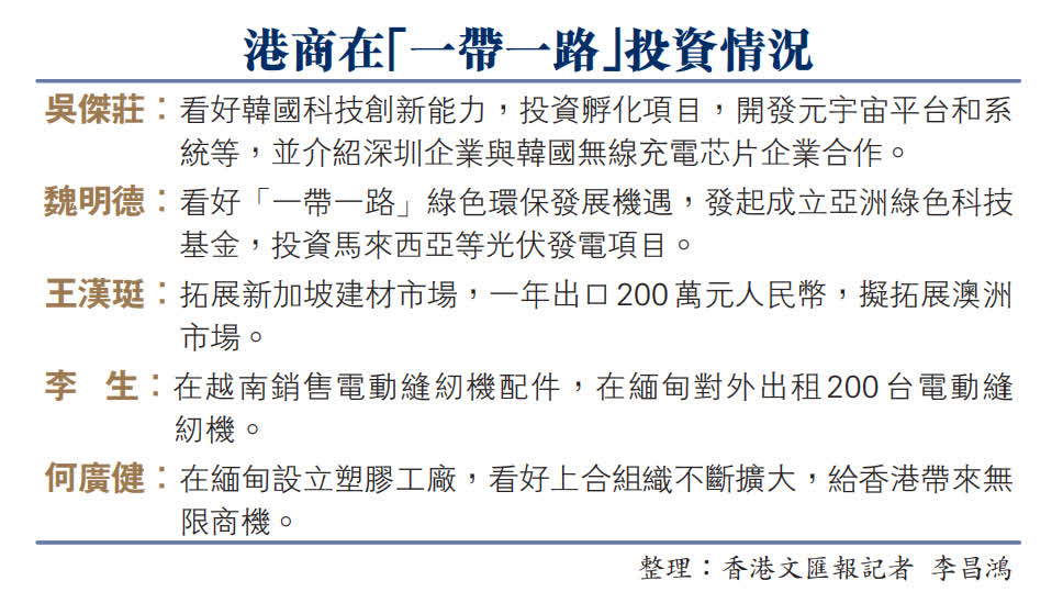 (香港文匯報 記者 李昌鴻)國家主席習近平提出的「一帶一路」倡議,受到全球多個國家積極響應並加入,在中國的積極推動支持下,中國與這些國家的貿易、投資和合作蒸蒸日上。近年來,一些港企負責人以睿智的眼光,利用香港擁有金融、貿易、投資、資訊等眾多優勢,瞄準「一帶一路」沿線國家和地區尋求合作。香港文匯報記者採訪多位港商,他們積極在「一帶一路」沿線開展業務,或投資實業、或通過科創和市場合作、或拓展綠色環保業務,令雙方獲得共贏。