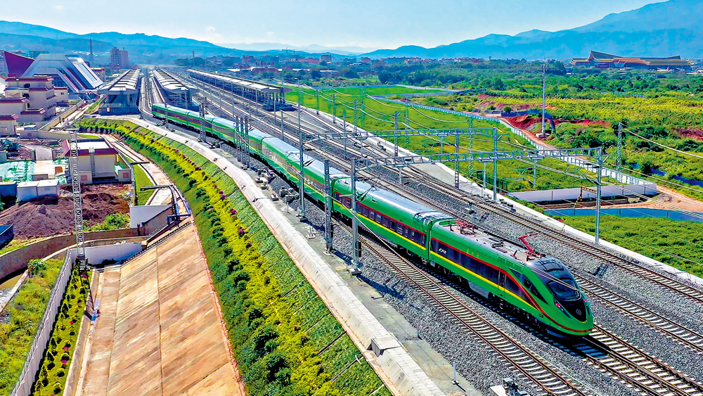 北起中國昆明,南至老撾萬象的中老鐵路,全長1035公里的鐵路,是中國高質量共建「一帶一路」的標誌性工程,鐵路於2016年開始建設,2021年12月3日通車,至通車9個月時,累計發送旅客671萬人次,累計運輸貨物717萬噸,其中跨境貨物128萬噸。中老鐵路國際貨物列車從開通初的每天1對,增至現在的每天5至6對左右,國際貨運總值已突破100億元。