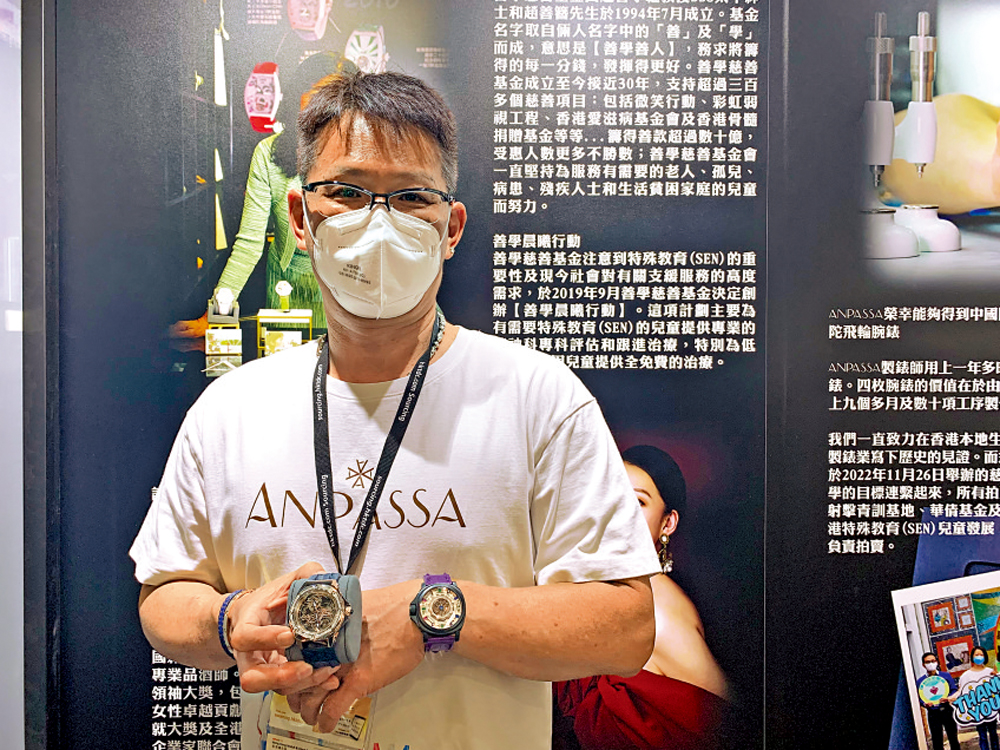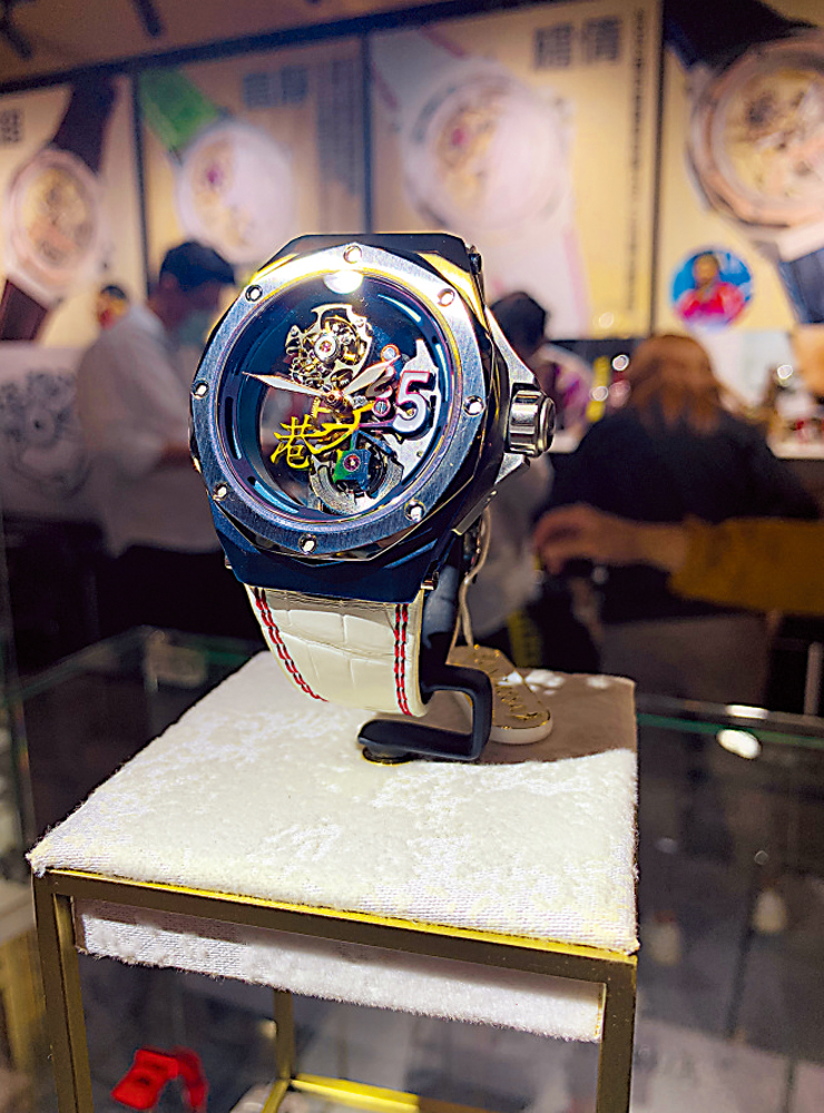 在展位上,艾柏斯還展示了紀念香港回歸祖國25周年的紀念腕錶,以及品牌成立九周年的特別款腕錶,甚至別具匠心地將鐘錶師打磨鐘錶零件的設備,也帶到了展廳現場。