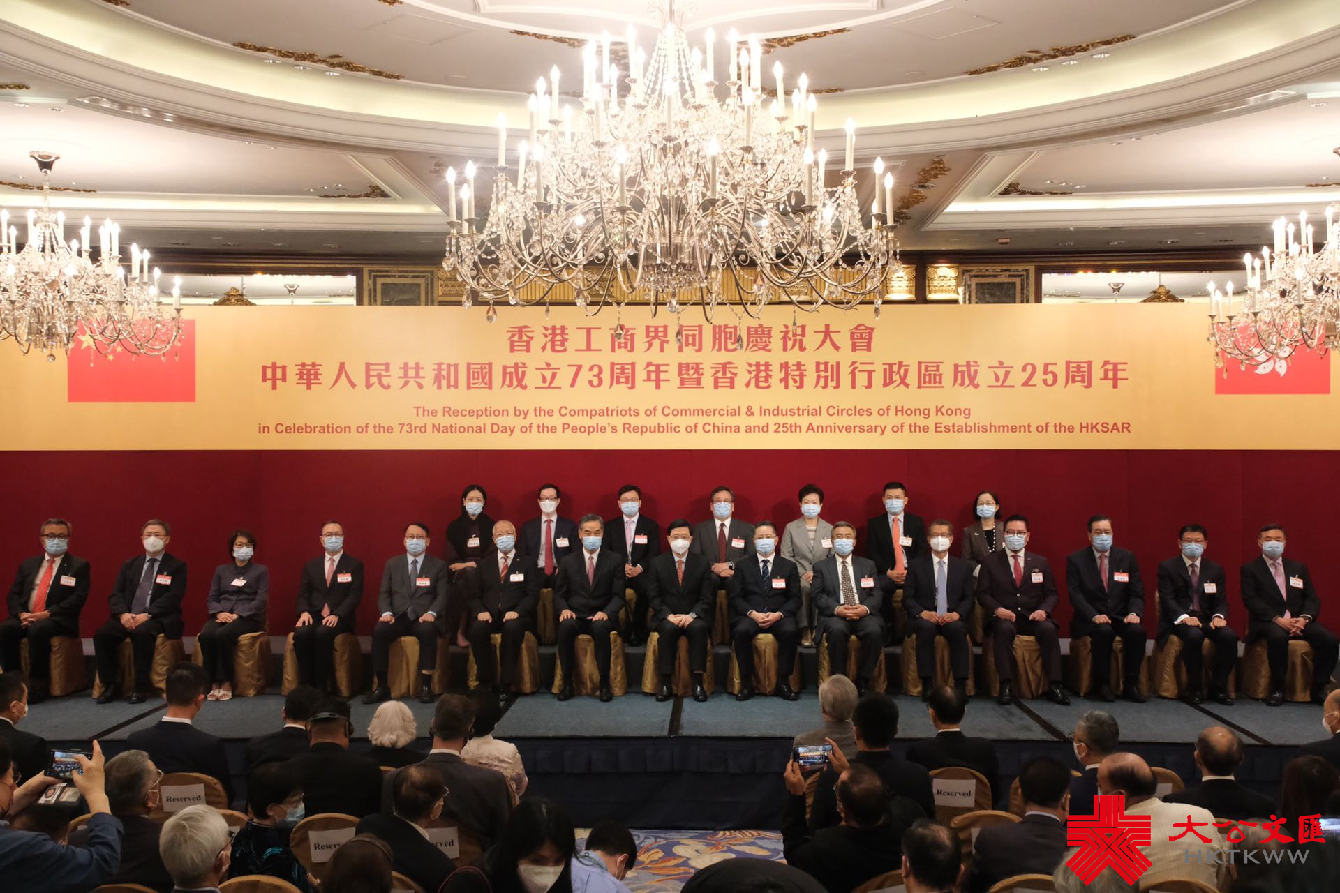 (大公文匯全媒體 記者 馮沛賢)今年是中華人民共和國成立73周年暨香港特別行政區成立25周年,工商界組成「香港工商界同胞慶祝國慶籌委會」,並於今日(13日)舉行「香港工商界同胞慶祝大會」,多位重量級政商名人擔任嘉賓,負責主禮活動。