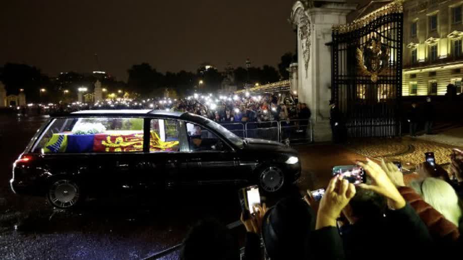 據中新網援引英國天空新聞網報道,當地時間13日20時5分,英國女王伊麗莎白二世的靈柩已從蘇格蘭愛丁堡運抵倫敦白金漢宮。