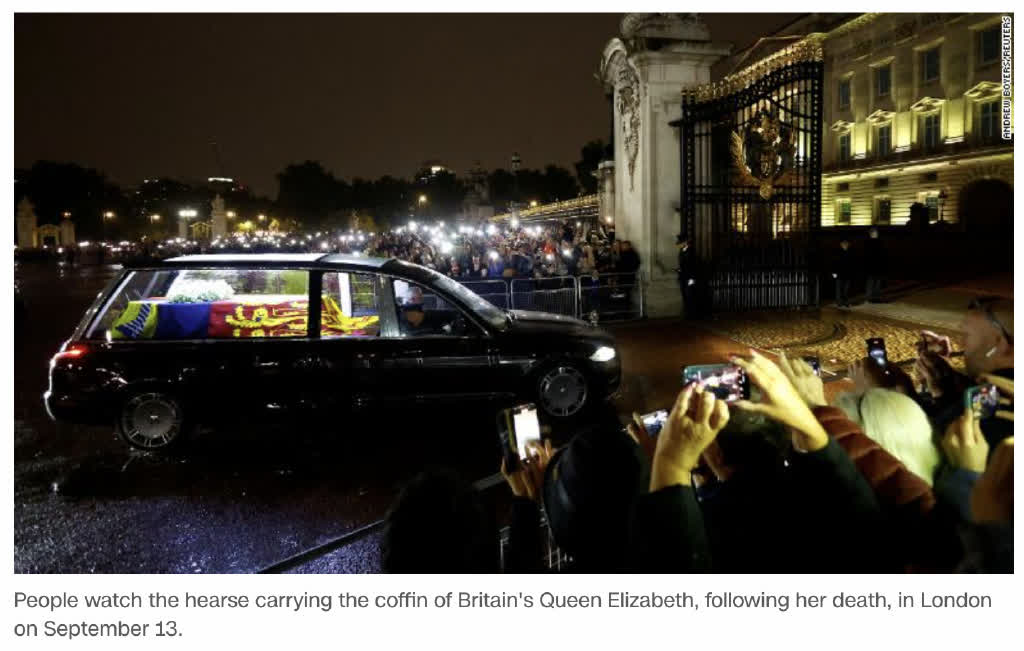據報道,接下來,女王的靈柩將在當地時間14日被轉移至威斯敏斯特宮停留數日,民眾可前往悼念,直至19日舉行葬禮。葬禮當天將是英國的公共假日。
