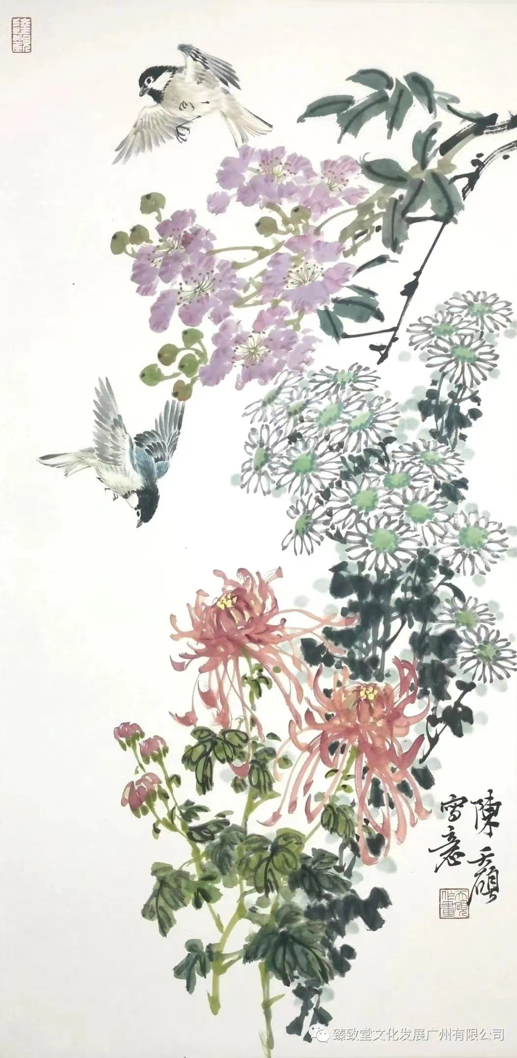 (大公文匯全媒體 記者 方俊明)由廣東省廣府人珠璣巷後裔海外聯誼會、粵港澳經濟文化交流中心指導的慶中秋之「薪火相傳」陳永康、陳天碩、韓暉中國花鳥畫小品展,目前在廣州臻致堂畫廊舉行,將持續至9月23日。70幅中國花鳥畫作品以嶺南比較有代表性的花木為題材,清新雅緻且盡情發揮筆墨性情,促進和推動嶺南地區文化藝術的交流。