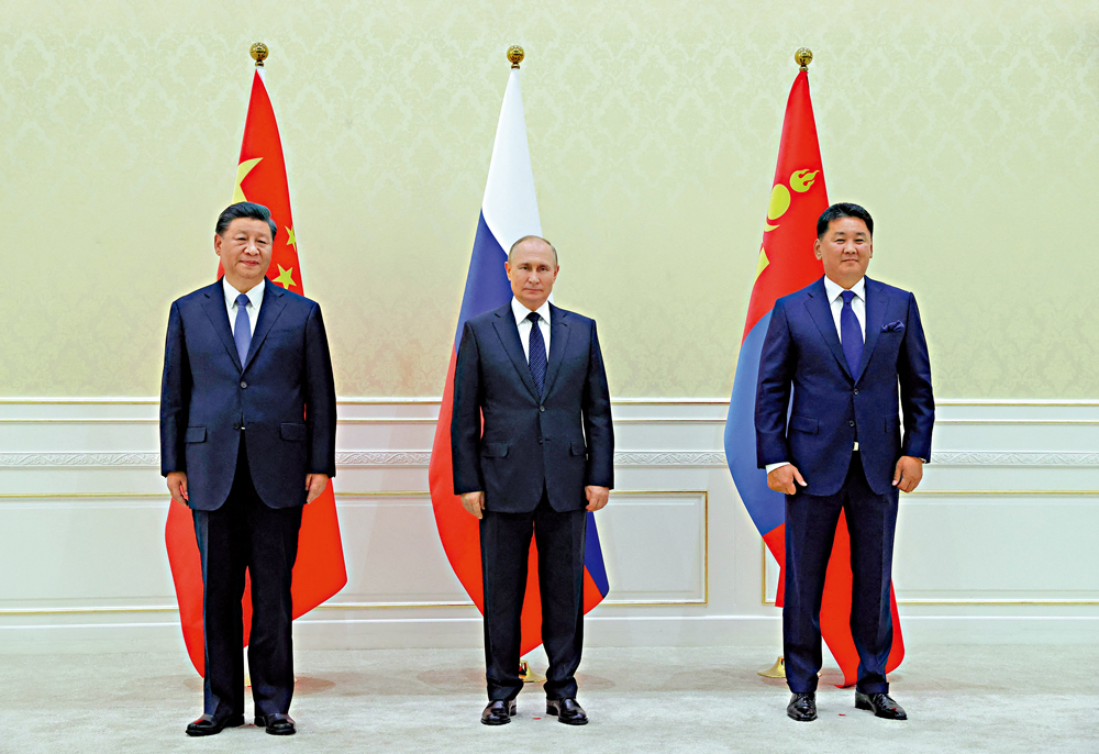 當日下午,習近平在撒馬爾罕國賓館會見蒙古國總統呼日勒蘇赫。習近平指出,中方把中蒙關係擺在周邊外交重要位置,願秉持親誠惠容理念,同蒙方一道弘揚傳統友誼,拓展互利合作,推動中蒙全面戰略夥伴關係邁上新台階。習近平強調,世界大勢浩浩蕩蕩,和平與發展是各國人民共同期盼,單邊主義、霸權行徑、冷戰思維終將在歷史潮流中湮滅。中方始終堅持和平、發展、合作、共贏原則,堅持構建人類命運共同體。中方願同蒙方加強治國理政經驗交流,加強「一帶一路」倡議同「草原之路」倡議對接,推進中蒙俄經濟走廊建設。