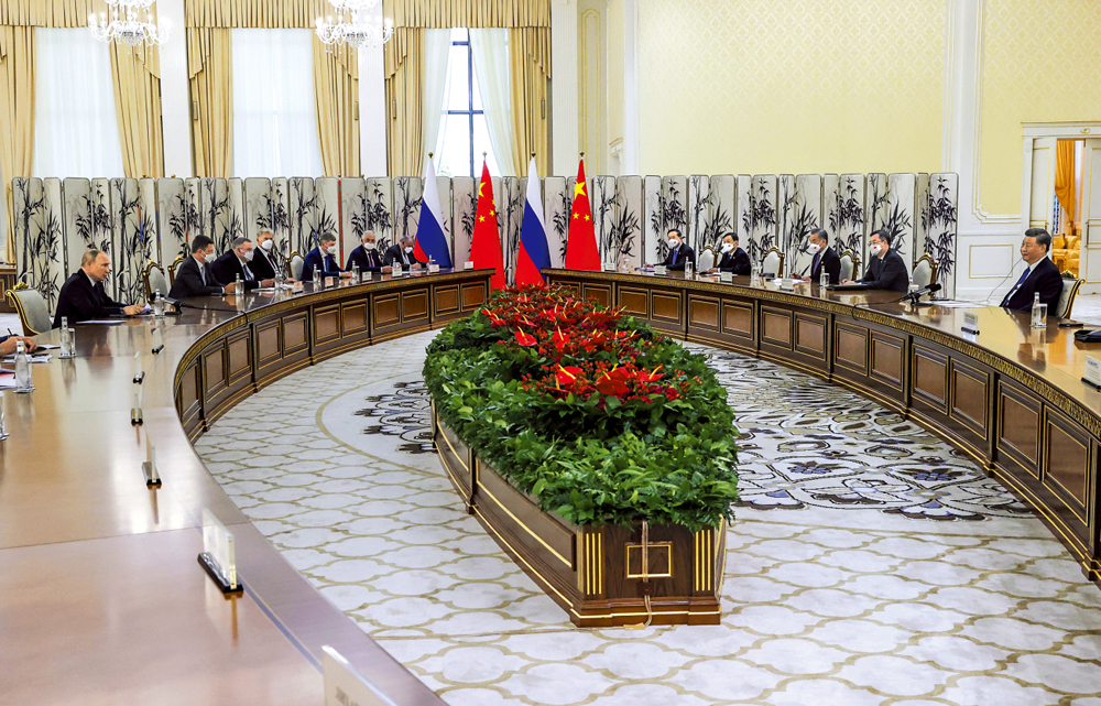 大公報據新華社報道:當地時間15日下午,中國國家主席習近平在烏茲別克斯坦撒馬爾罕國賓館同俄羅斯總統普京舉行雙邊會見,就中俄關係和共同關心的國際和地區問題交換意見。習近平讚賞俄羅斯堅持一個中國原則,強調台灣是中國的一部分,中方堅決反對「台獨」分裂勢力和外部干涉,任何國家都無權做台灣問題的裁判官。習近平同時強調,中方願同俄方在涉及彼此核心利益問題上相互有力支持。