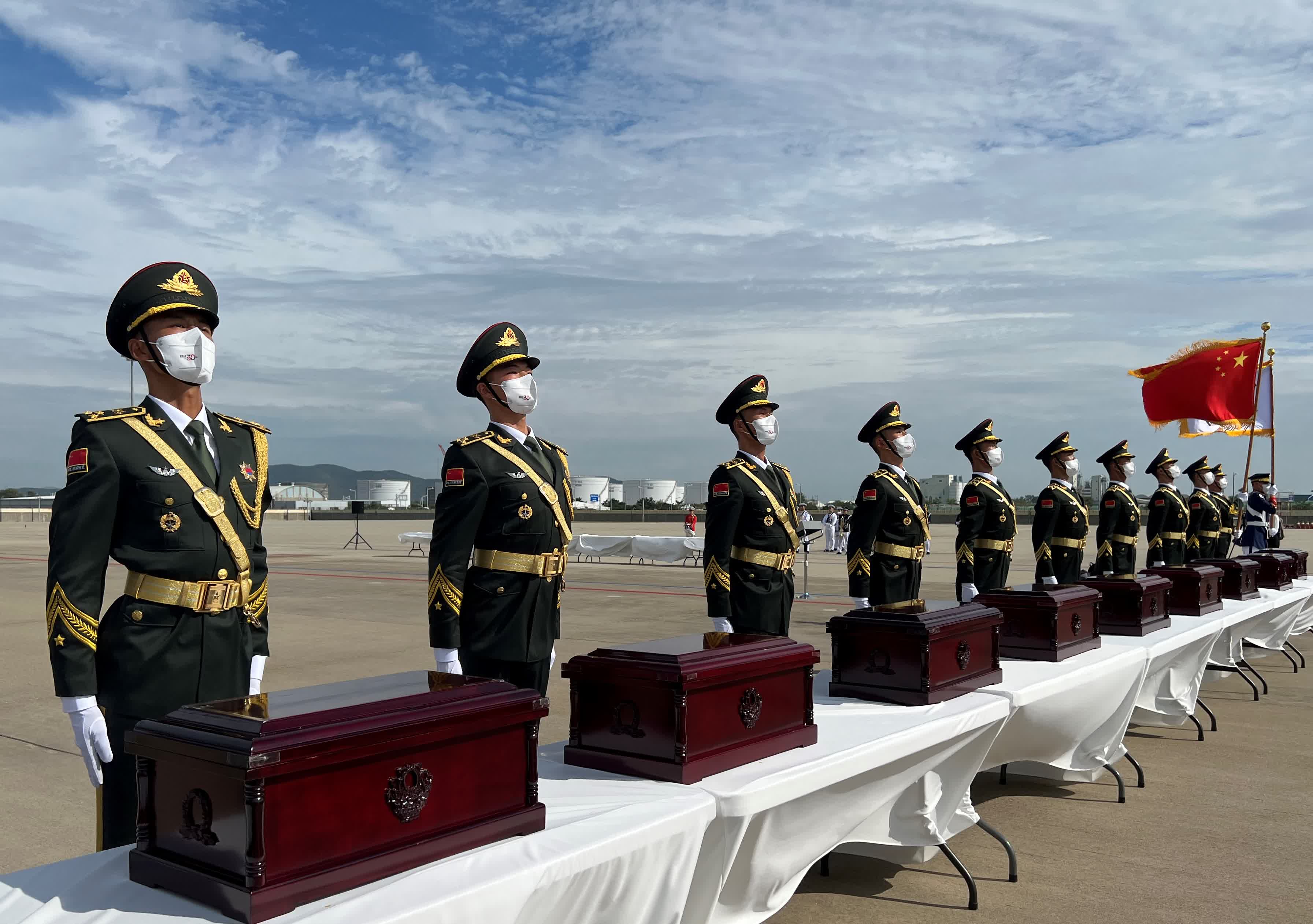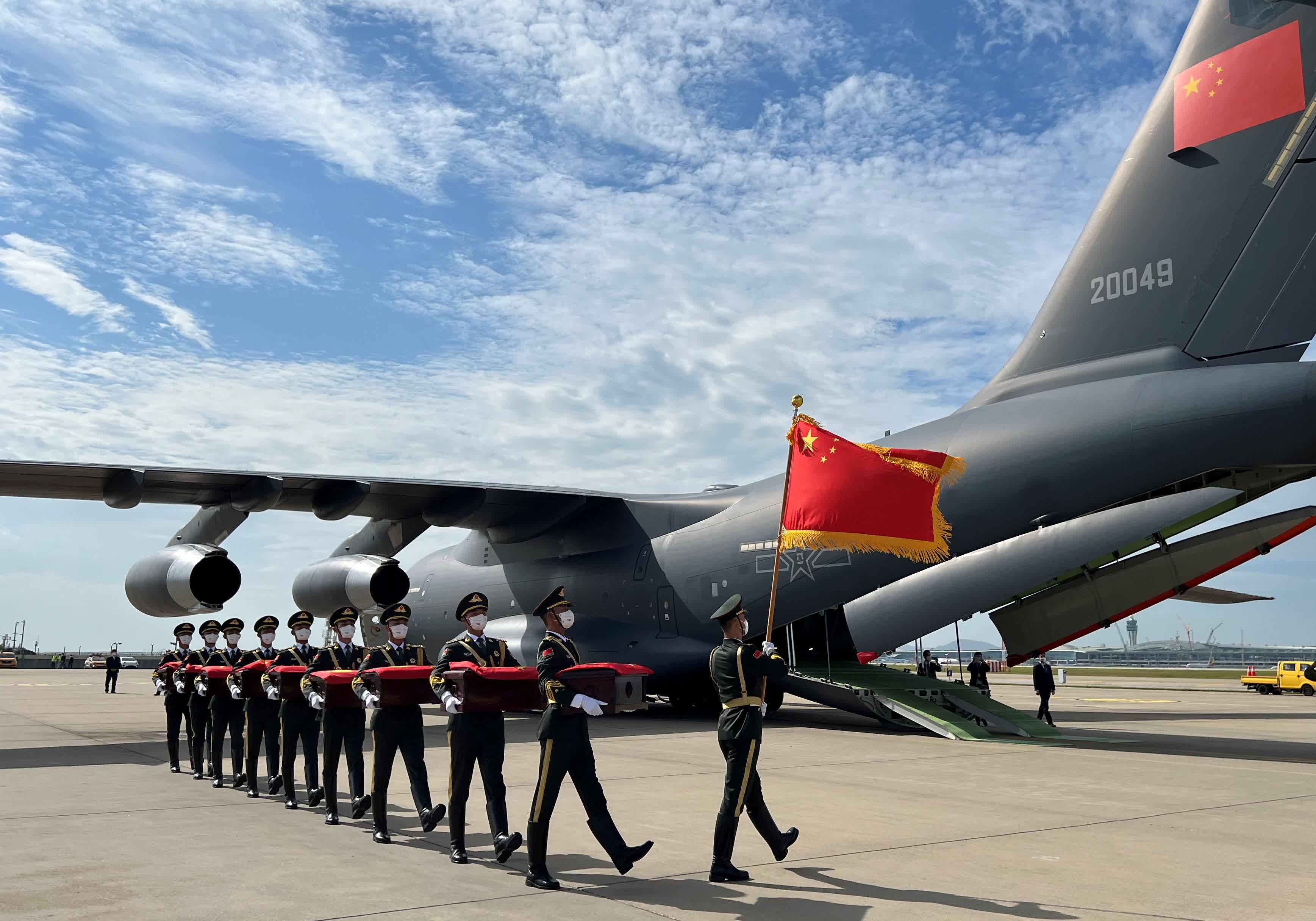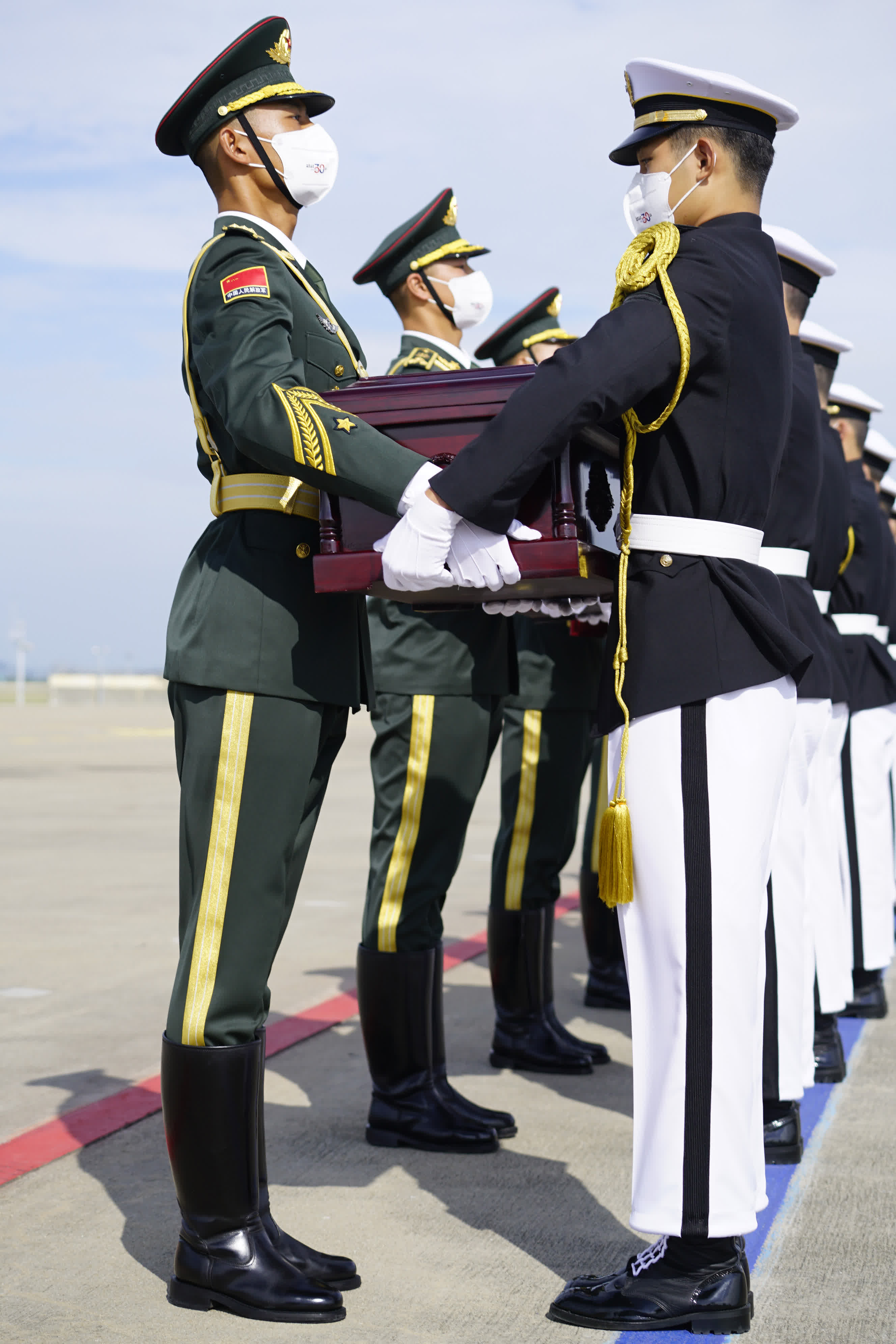 中韓雙方代表現場簽署交接書,確認交接88位在韓中國人民志願軍烈士遺骸及相關遺物。中國駐韓國大使邢海明為志願軍烈士棺槨覆蓋國旗,中方舉行悼念儀式,中國人民解放軍禮兵護送烈士棺槨登上解放軍空軍專機,烈士英靈將回到祖國和人民懷抱。