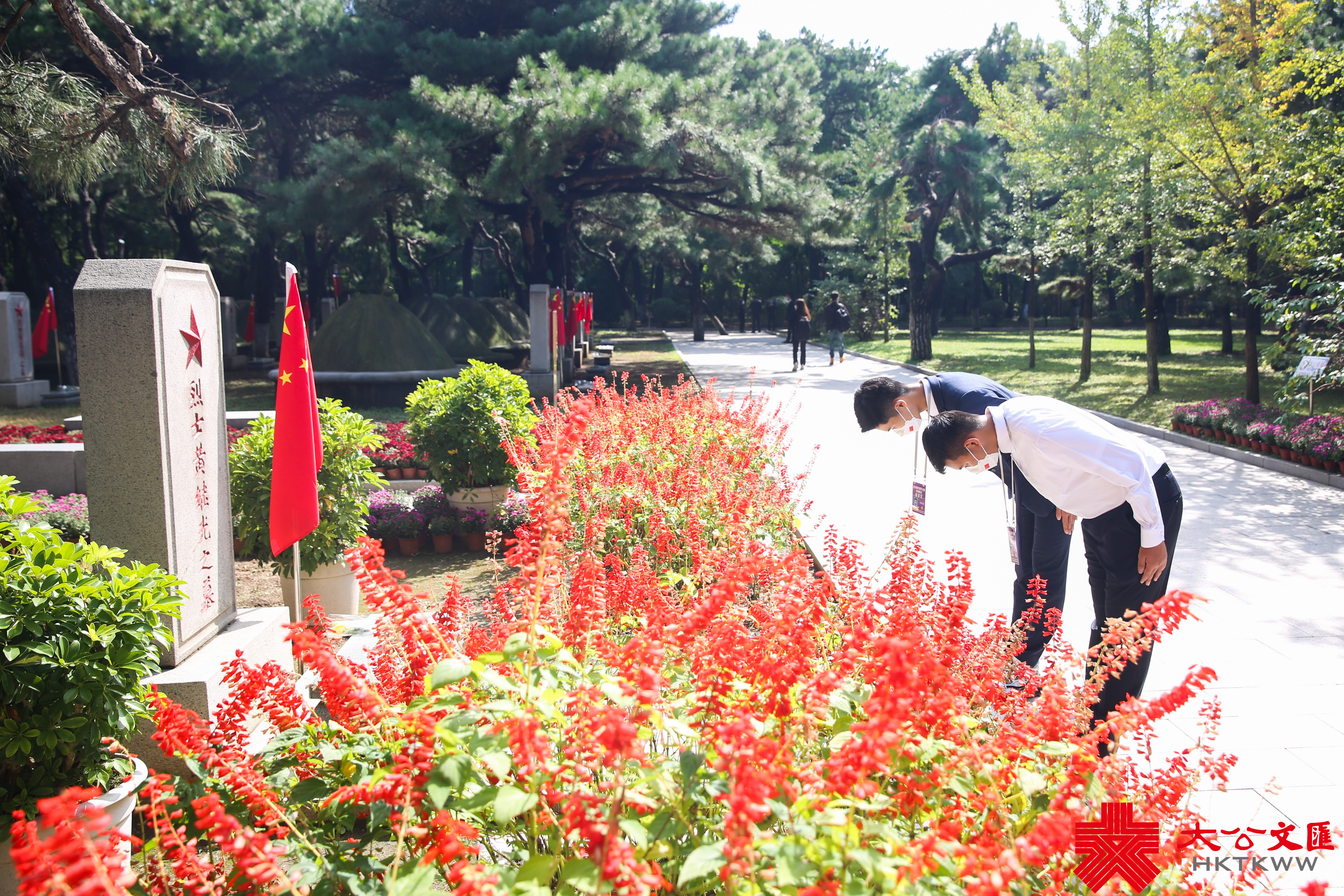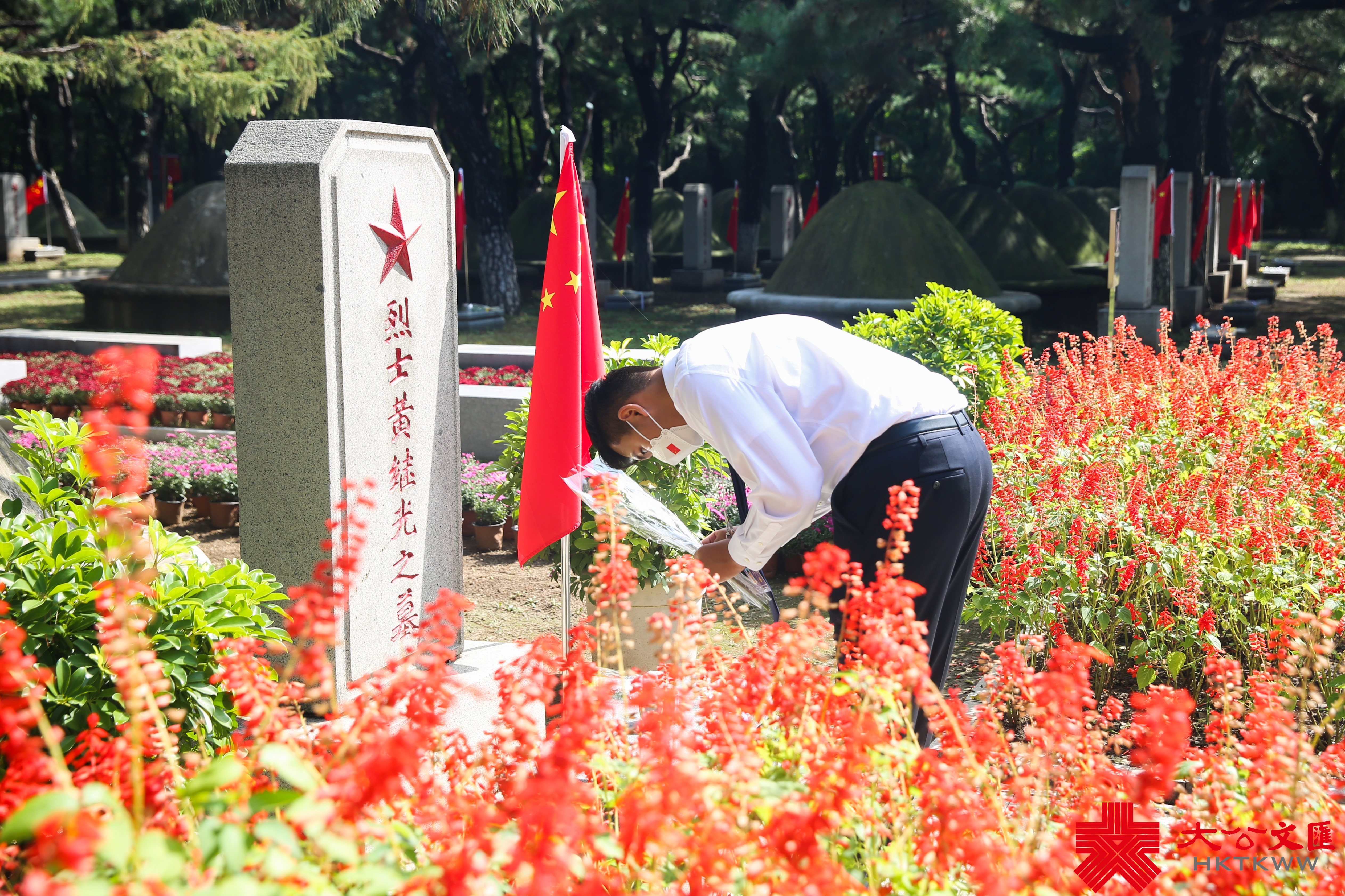 (大公文匯網記者 于珈琳)9月17日上午,第九批在韓中國人民志願軍烈士遺骸安葬儀式在瀋陽抗美援朝烈士陵園舉行。在參加完安葬儀式後,香港學生代表16歲的香港培僑中學高一生曲木之懿和培僑校友代表薑霏梵自發前往烈士陵園中的烈士墓碑前,代表港生向烈士祭拜並敬獻鮮花。他們默默在烈士墓前佇足、鞠躬,緩緩走向烈士墓碑敬獻代表哀思的黃色菊花。「看着一個個烈士的墓碑,我們想到他們曾經也是像我們一樣年輕,當年背負着歷史使命奔赴前線為國作戰,這種精神和意志是我們的精神指引,一定會代代相傳、生生不息。」