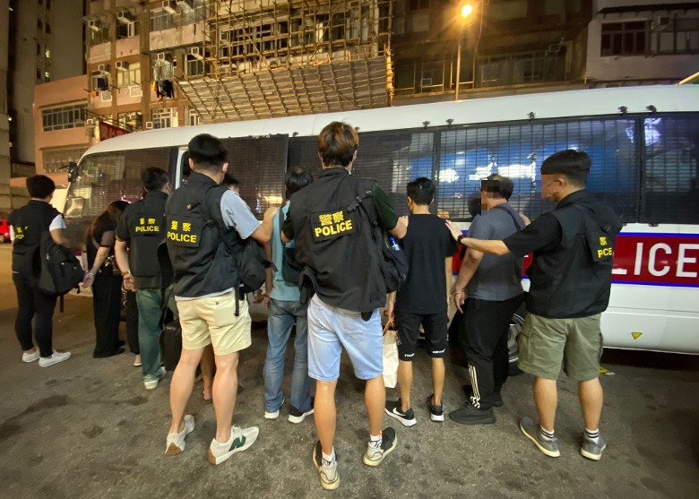 當中被捕的17男5女及8男3女,亦同時分別涉嫌違反《預防及控制疾病(規定及指示)(業務及場所)規例》,以及《預防及控制疾病(禁止聚集)條例》,執法人員向他們發出定額罰款通知書。