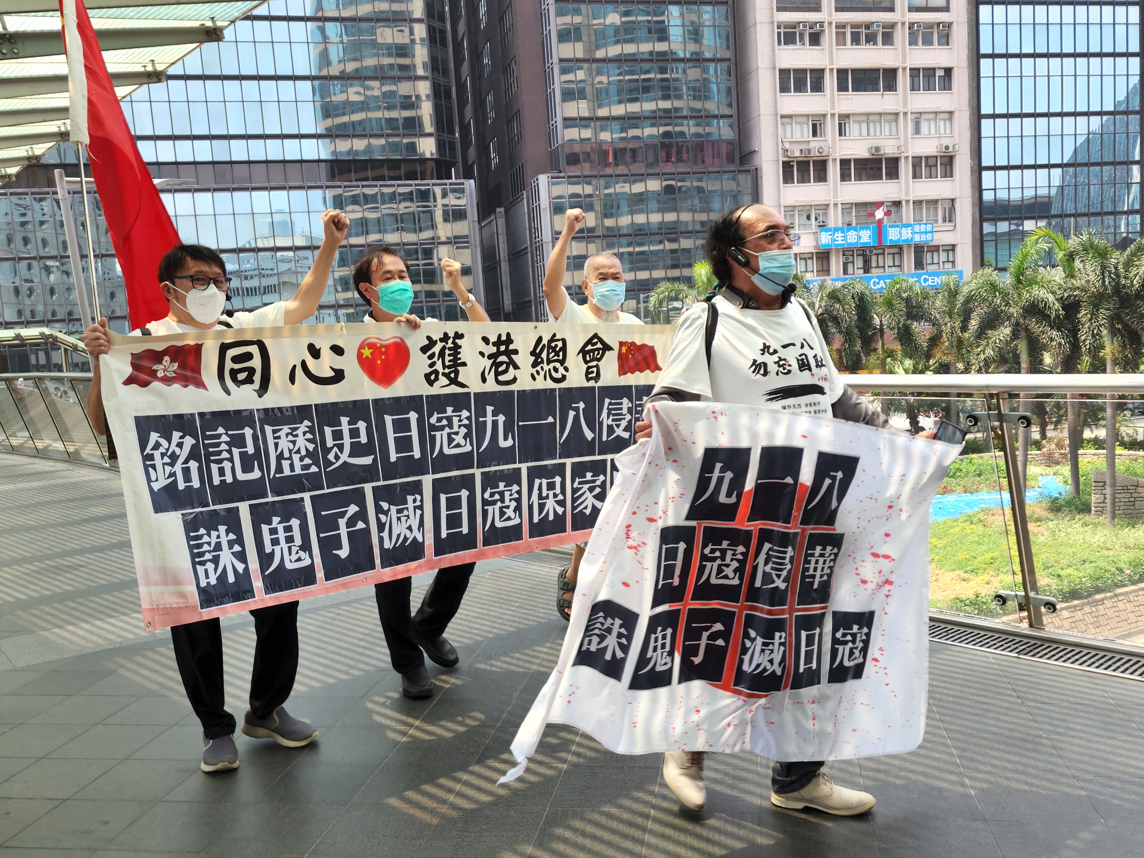 團體「同心護港總會」今日舉行活動,呼籲市民銘記歷史,勿忘國恥。團體表示,現在的中國不是1931年的中國了,香港擁有祖國這個堅強的後盾,解放軍擁有先進的裝備,完全能夠保衛國家安全。反觀日本,非但沒有正視和承認日軍侵華的史實,反而對復辟軍國主義蠢蠢欲動。團體強調,日本妄圖復辟軍國主義的行徑完全是白費心機、徒勞無功。