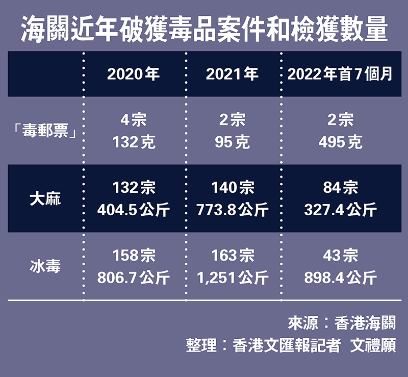 毒販利用社交媒體的高度隱藏性作「播毒」,香港文匯報記者翻查香港海關的執法數字顯示,近年偵破「毒郵票」的案件每年平均2至4宗。海關發言人接受香港文匯報查詢時表示,香港與內地及海外執法機關保持緊密合作,採取聯合行動打擊毒品供應源頭,堵截毒品流入香港或經香港轉運至其他地區;並在海、陸、空各出入境管制站實施嚴格管制,採取風險評估及利用高科技設備,如多種不同類型的先進X光機及離子分析儀,提升偵測毒品的能力。