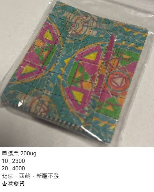 (香港文匯報 記者 文禮願)疫情下酒吧、Party Room或夜店限制聚集,毒品散貨渠道大減,有毒販遂改到社交媒體販賣包括大麻糖果、大麻曲奇、冰毒,以及一款用紙張沾滿含有麥角二乙胺等多種強烈迷幻藥成分、俗稱「毒郵票」的違禁品。香港文匯報記者近日成功透過秘密群組聯絡到群主毒販,對方拍心口表示能以EMS快遞方式將「貨品」郵寄到戶,過程以加密貨幣結算,一兩周「包收到貨」,又肆無忌憚揚言可用Gogovan貨車作即場「面交」,擺明「唔驚拉」。
