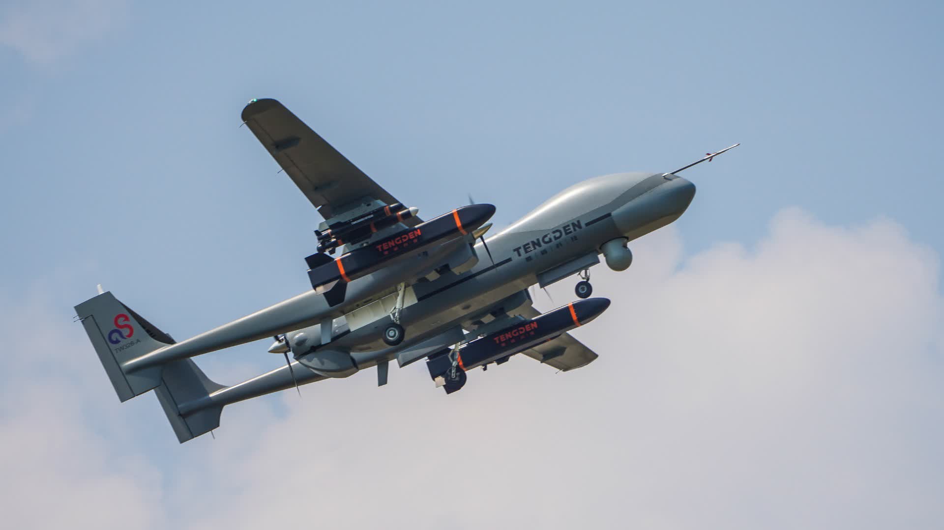 TB-001於2017年首飛,本是一款雙發大型無人機,2019年升級成為全球第一款三發重型長航時無人機。機長10米、翼展20米,最大飛行時間35小時,可以在超過8000米的高空長時間滯留,作戰半徑可達3000公里。