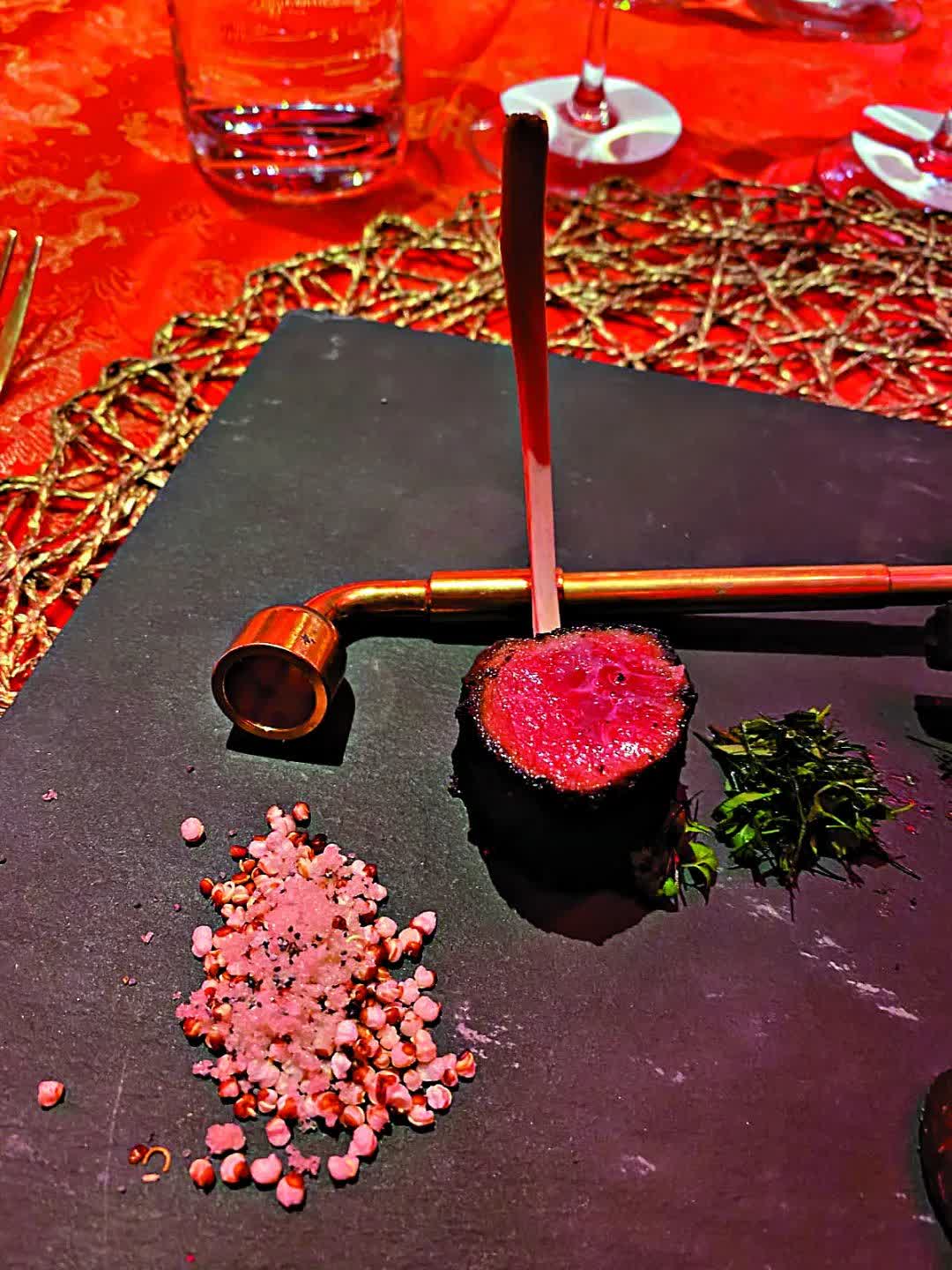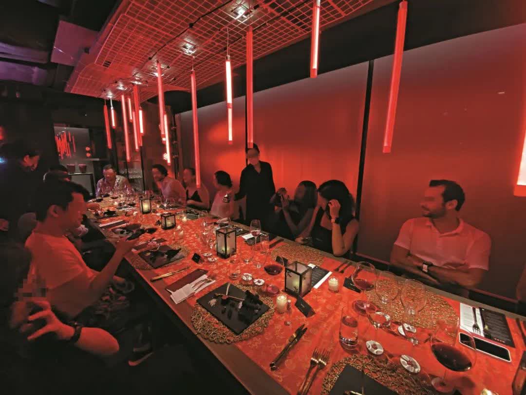 記者於9月8日通過網上訂位,獲安排翌日到上址享用晚餐。當晚記者最早到場,負責接待的外籍女子,只要求記者以手機掃描門口「安心出行」二維碼,即可入座,沒有再要求核實「疫苗通行證」及做快速抗原測試。記者目擊當晚其他食客均只掃「安心出行」,而毋須做任何測試或被要求出示核酸檢測結果。入場坐下後,侍應即奉上一杯香檳作「迎賓酒」。場內設有開放式水吧,擺滿各種酒水及酒杯,有3名職員負責打理酒水。飯局開始後,所有菜式都會配上一款紅或白葡萄酒,無論是網上或當晚的菜單,都列明酒類的名稱、款式、年份及產地等,所有酒水可供不停添飲。