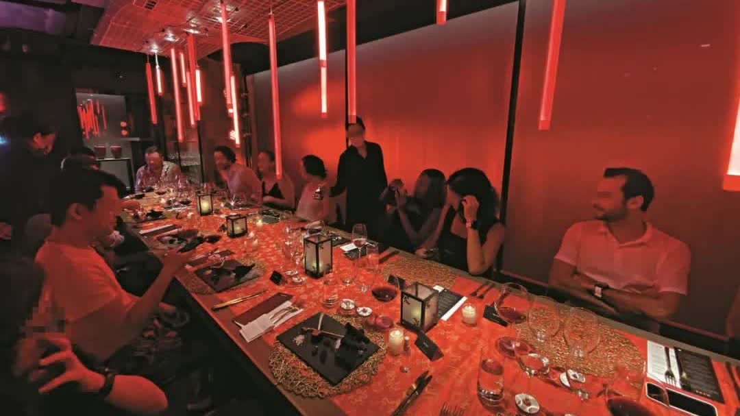 當晚場內有4名廚師工作,晚餐約7時半開始,共16名客人,大部分是外籍人士,全部圍坐在一張長形的餐桌,大部分互不相識,涉嫌違反不超過8人一枱的防疫規定。晚餐加插多場歌舞表演,其間有舞孃更持酒樽將酒倒入一名外籍男客人口中,氣氛火熱。而晚餐提供的八道菜式,其中第五道「日軍入侵」是日式魚生和刺身,第八道菜「憧憬未來」中Parfait(芭菲雪糕甜品)均涉《食物業規例》中的限制出售食物(包括刺身及冰凍甜品)。