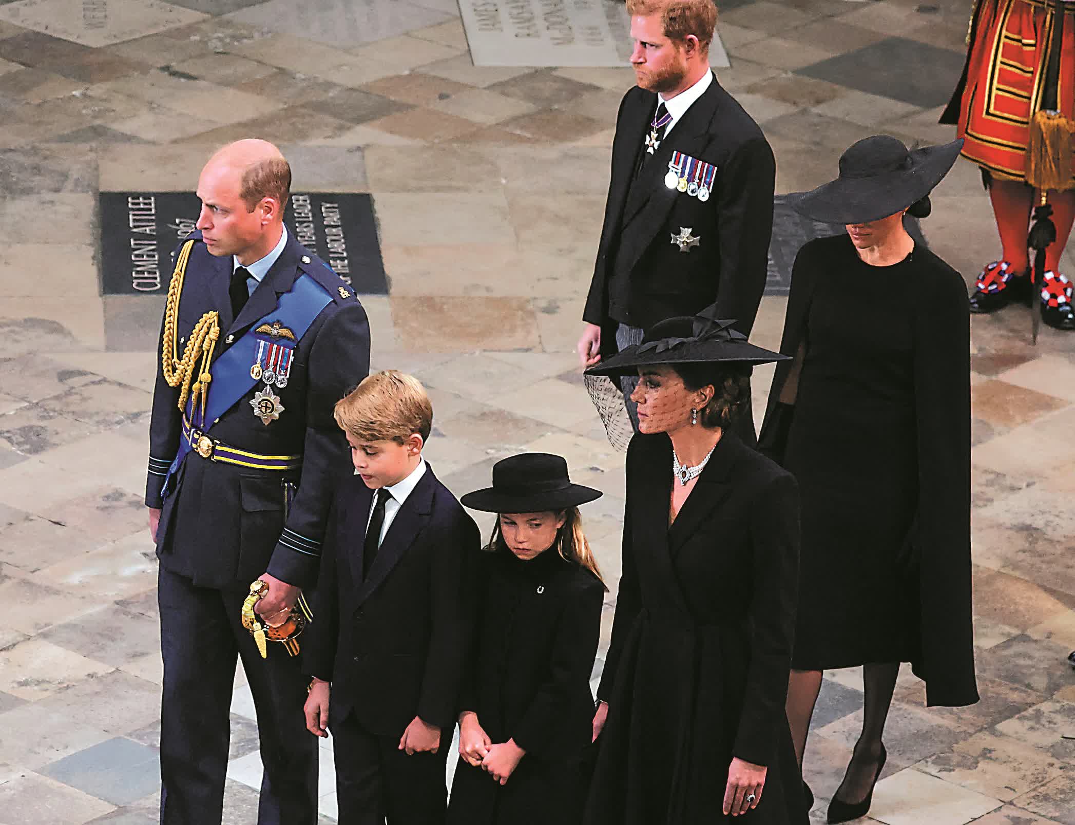 英國坎特伯雷大主教在葬禮上布道和致辭,英國首相特拉斯朗讀了《聖經》中的一段經文。儀式最後,全場為女王默哀兩分鐘。年僅9歲的喬治王子和7歲的夏洛特公主也跟隨父親威廉王子出席了葬禮,是現場年齡最小的王室成員。據英媒報道,喬治在儀式中悄悄拭淚,他目前是英國王位的第二順位繼承人,王室認為讓他露面有助於穩定民心。