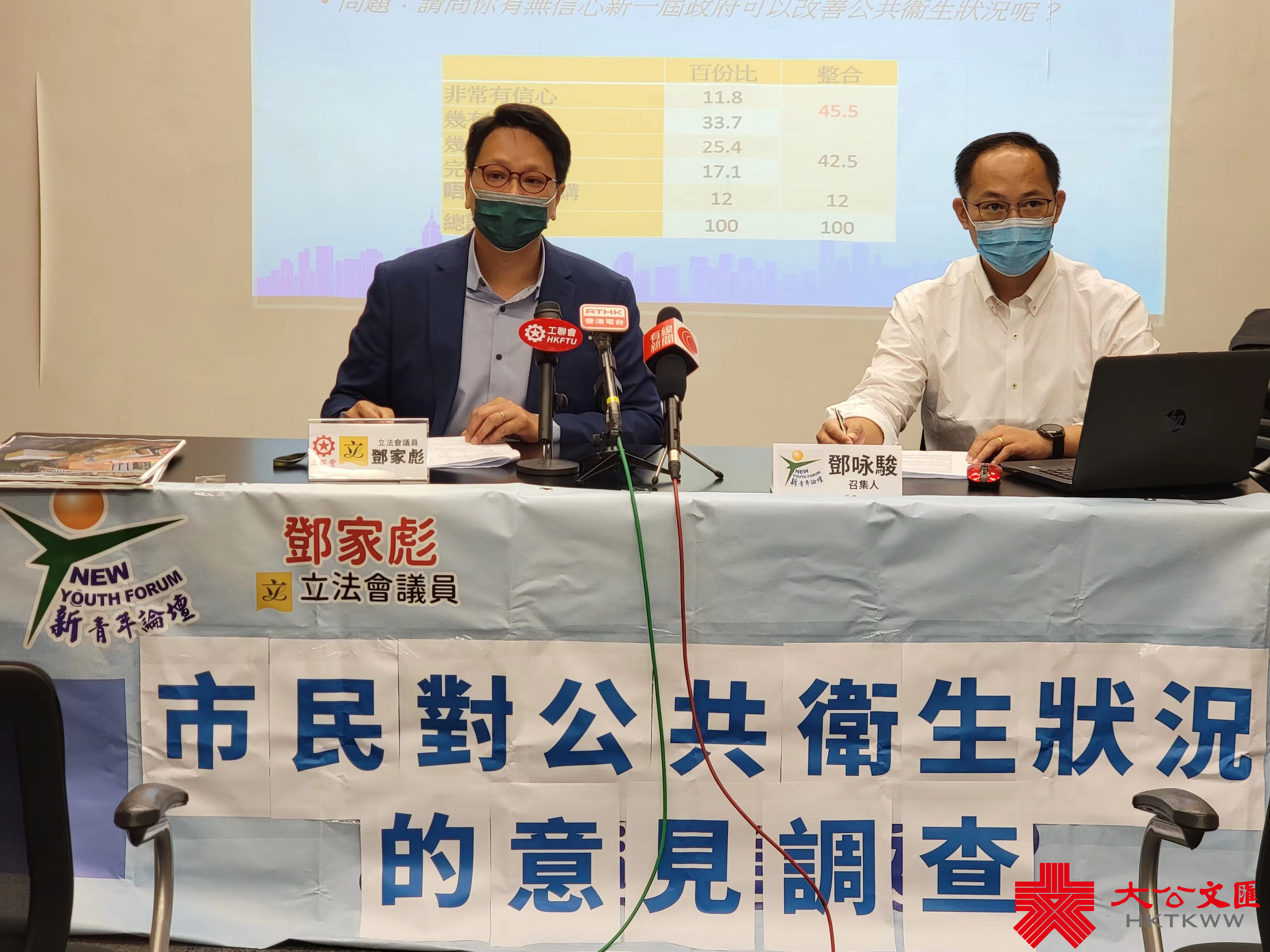 大公文匯全媒體報道,政府8月14日啟動打擊衞生黑點計劃,新青年論壇聯同立法會議員鄧家彪訪問654名市民,了解他們對公共衞生狀況的意見及對政府處理公共衞生工作的信心,並於今日(20日)發表報告。結果顯示,49.1%受訪者傾向滿意香港現時的公共衞生狀況,45.5%受訪者對新一屆政府改善公共衞生狀況有信心,亦有66.7%人贊成透過增加罰額來改善亂拋垃圾引致的公共衞生問題。