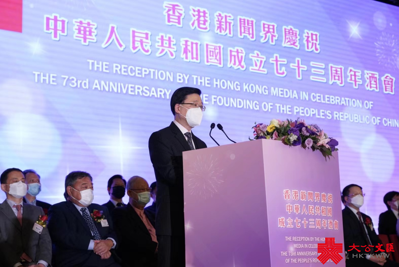 大公文匯全媒體報道,香港新聞界慶祝國慶籌備委員會今日(22日)主辦「香港新聞界慶祝中華人民共和國成立七十三周年酒會」。香港特區政府官員、中央駐港機構代表、社會各界翹楚及新聞界人士等出席活動,共同歡慶祖國73華誕。