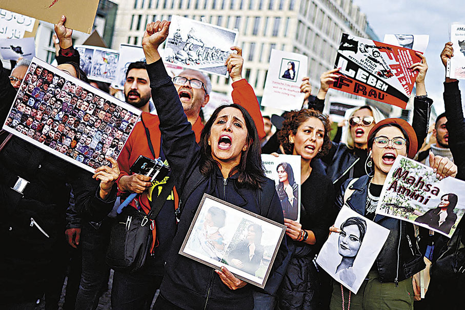22歲的庫爾德族女子阿米尼13日因涉嫌戴頭巾「不當」,被當地道德警察扣留,3天後在關押期間死亡。當局上周二證實阿米尼死亡後,伊朗不少人認為她是被警員毆打致死,大批群眾上街示威,更演變成暴力衝突,有人縱火焚燒警局和車輛,以及架設路障堵路。伊朗國營電視台報道,連日示威已造成最少35人死亡,當中包括示威者及警察。總統萊希已多次重申,驗屍報告證明阿米尼沒有被毆打,已下令徹查事件,但群眾繼續鬧事。萊希前日再次警告,敵人藉此製造暴亂,危害國家和人民安全,強調無人會因此屈服,多個城市也有群眾上街支持保安部隊執法。