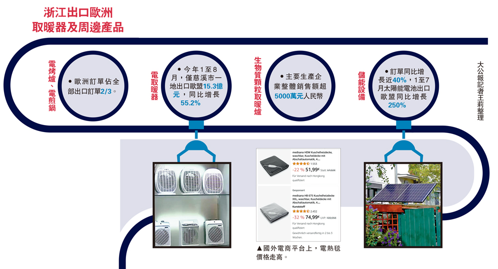 (大公報 記者 王莉)浙江省慈溪市是中國取暖器主要生產基地之一,出口量佔全國三成。從這裏走出的各式取暖器,因生產工藝成熟、安全性高且具有價格優勢,成為國際市場寵兒。「往年取暖器訂單一般到9月份就全部做完了,今年9月後又追加了近1000萬(人民幣,下同)散單,10月底之前必須交貨,因為要趕在聖誕節前在歐洲市場上市。」浙江慈溪富運電器有限公司總經理徐松烈告訴記者,受天然氣供給受限、價格暴漲影響,今年歐洲客戶對取暖器的需求明顯增加,不斷加單,加單量超10萬台。目前工人正全力忙「補單」,迎接「黑色星期五」(11月25日)購物潮的挑戰。