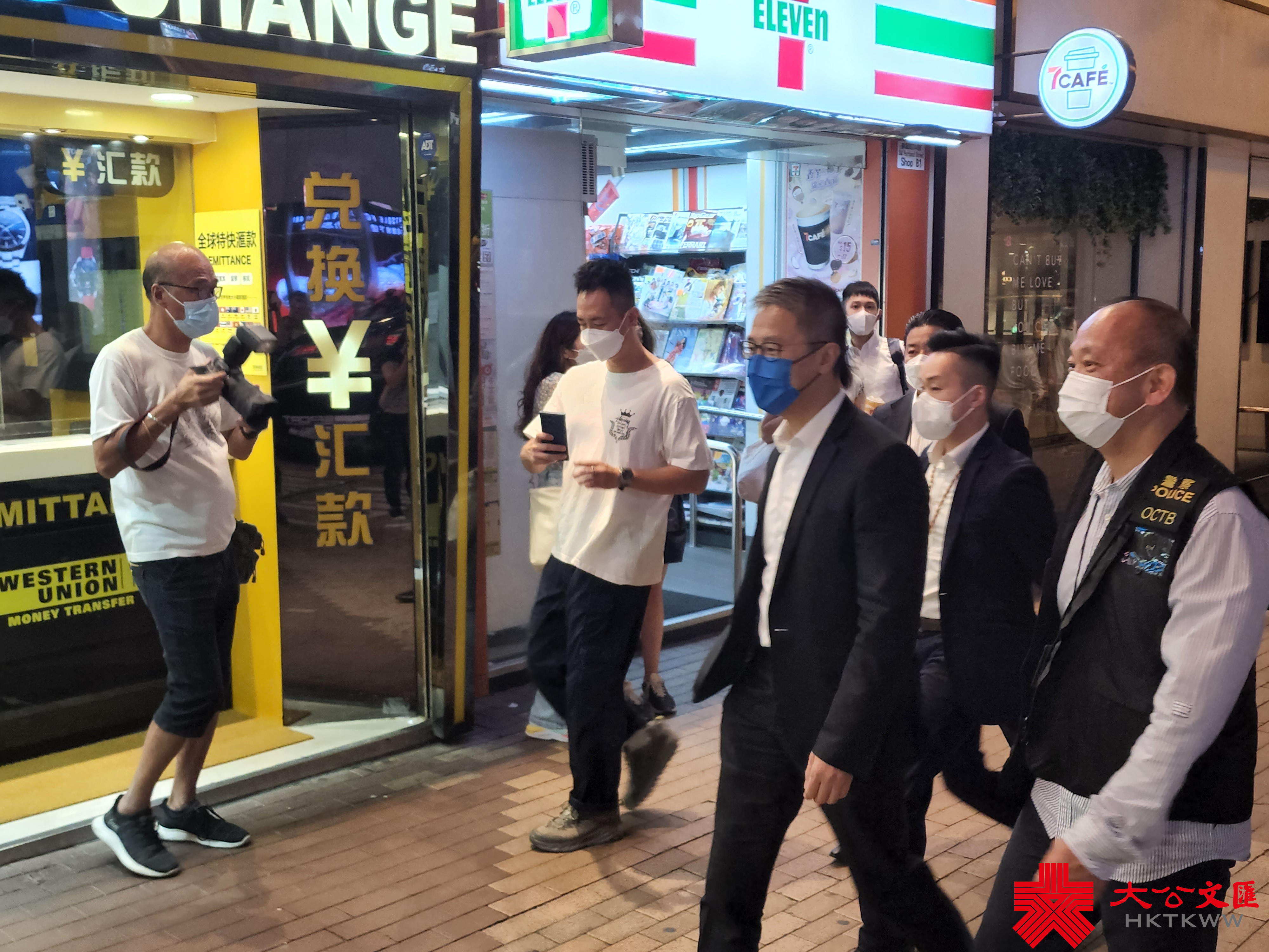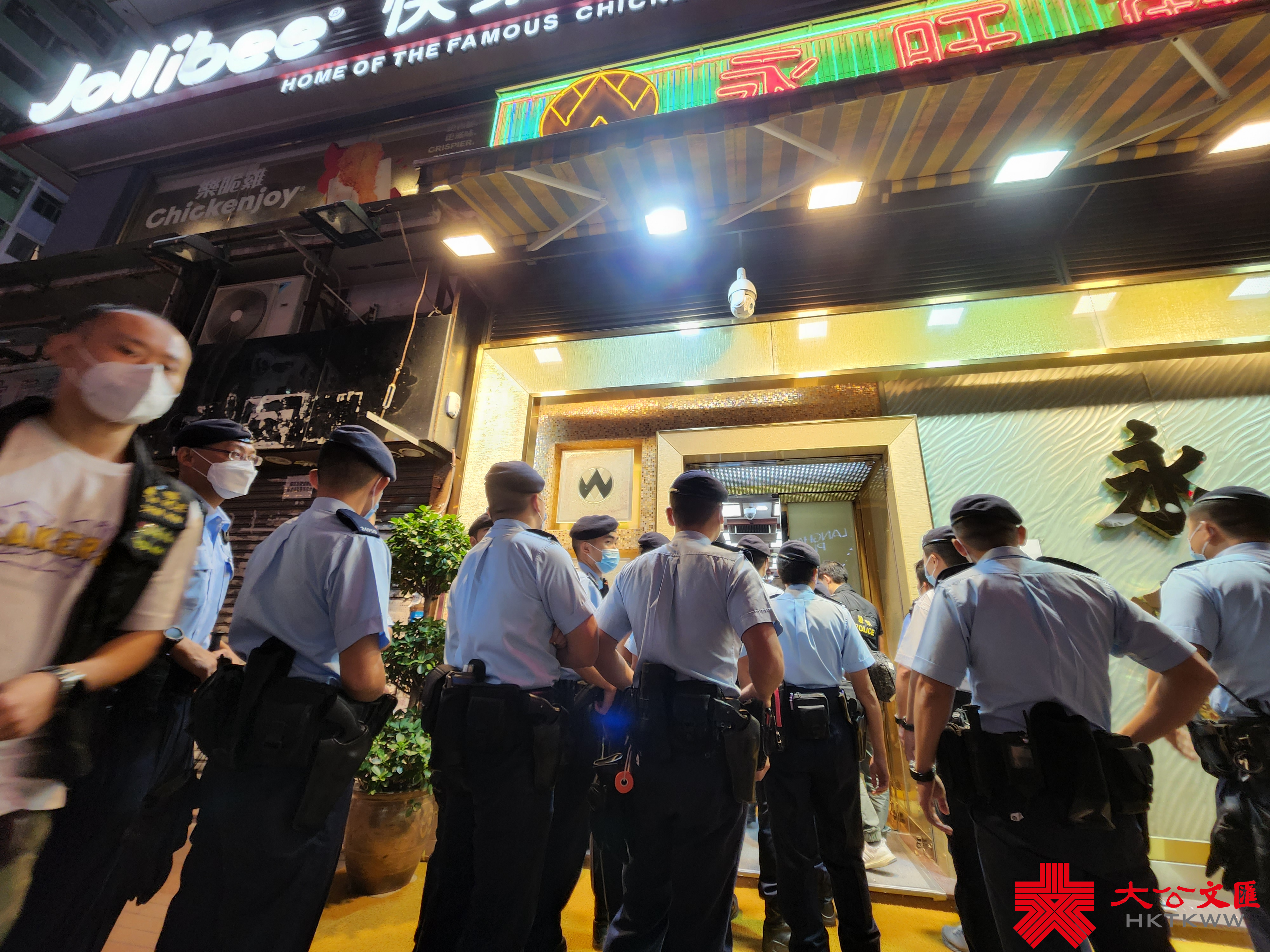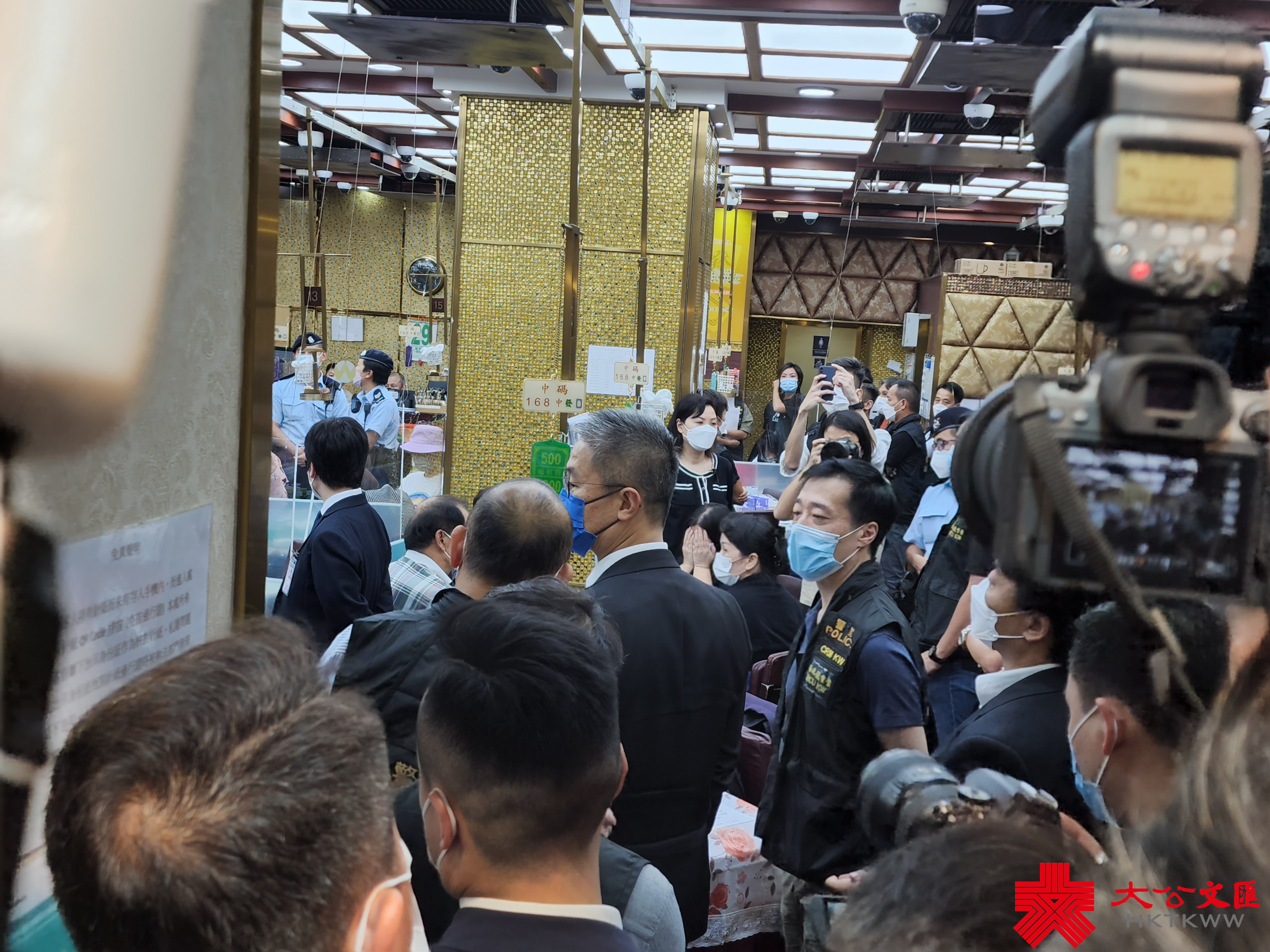 (大公文匯全媒體記者 何燊亮)「十一」國慶將至,警方今晚(29日)於旺角展開「雷霆2022」及「犁庭掃穴」行動,巡查區內包括砵蘭街及亞皆老街一帶的娛樂場所,參與部隊包括有組織罪案及三合會調查科(O記)、警察機動部隊等。警務處處長蕭澤頤親自到場監督,並進入朗豪坊對面一所麻將館視察查牌情况,逗留約15分鐘。
