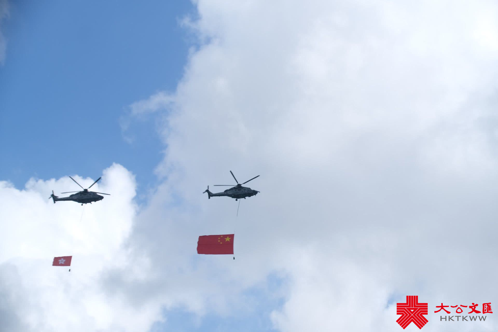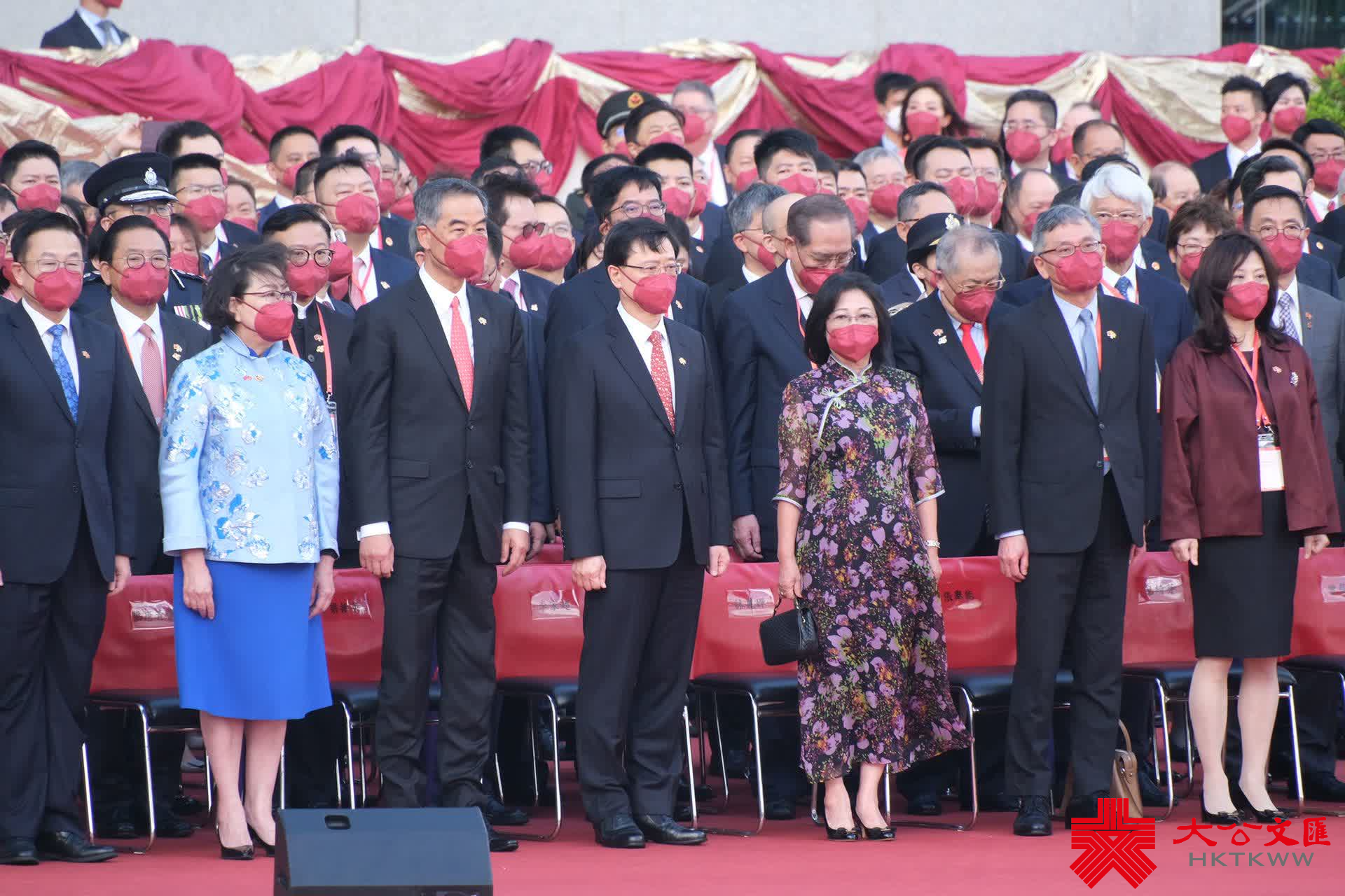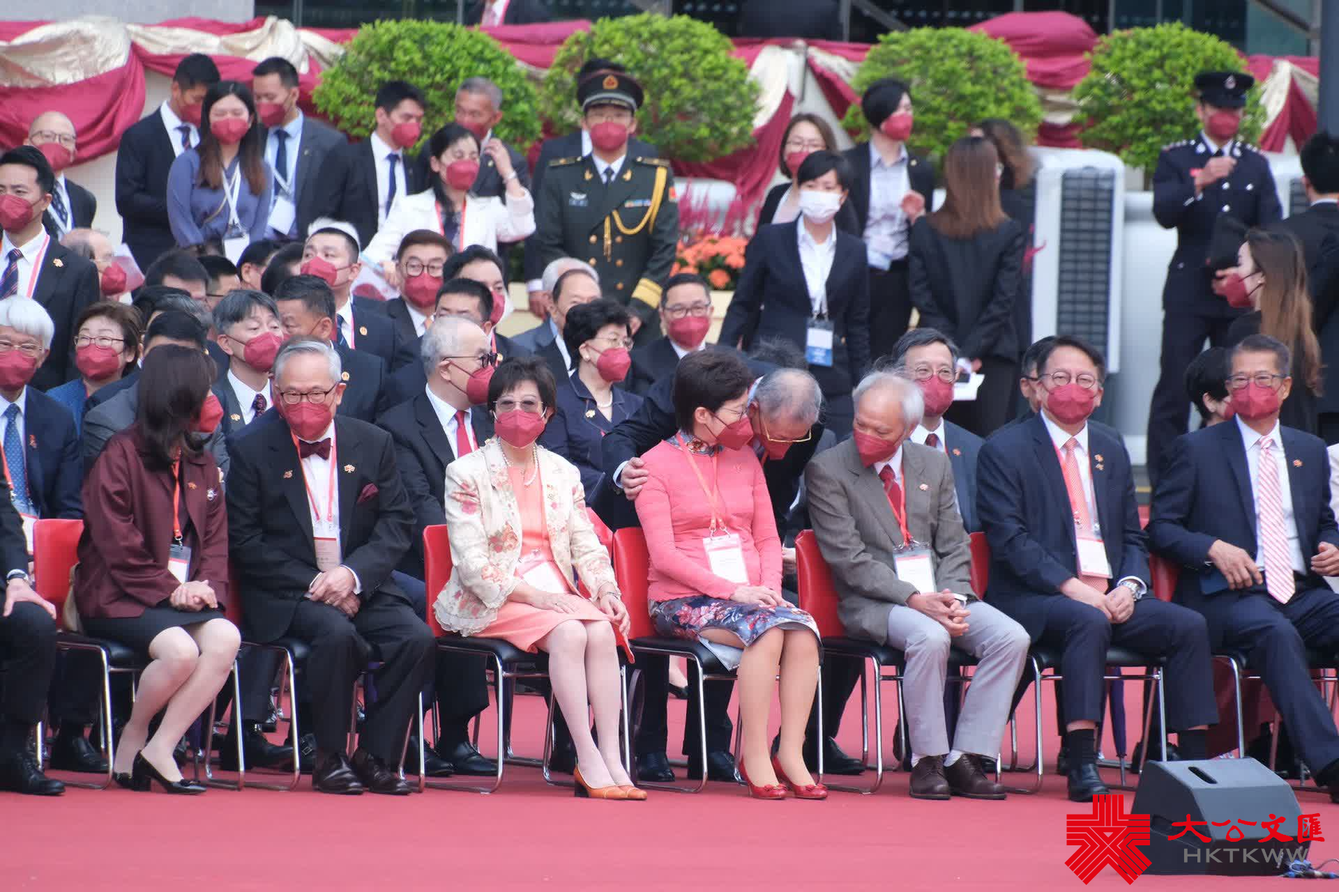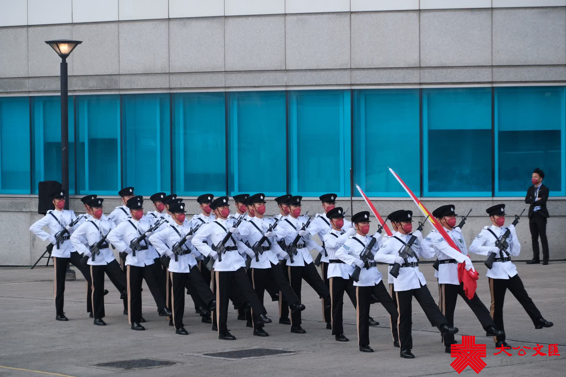 升旗儀式上午8時在灣仔香港會議展覽中心(會展)外的金紫荊廣場舉行。儀式中,警察樂隊奏樂,歌唱家譚天樂和張倩領唱國歌;紀律部隊在空中和海上敬禮。
