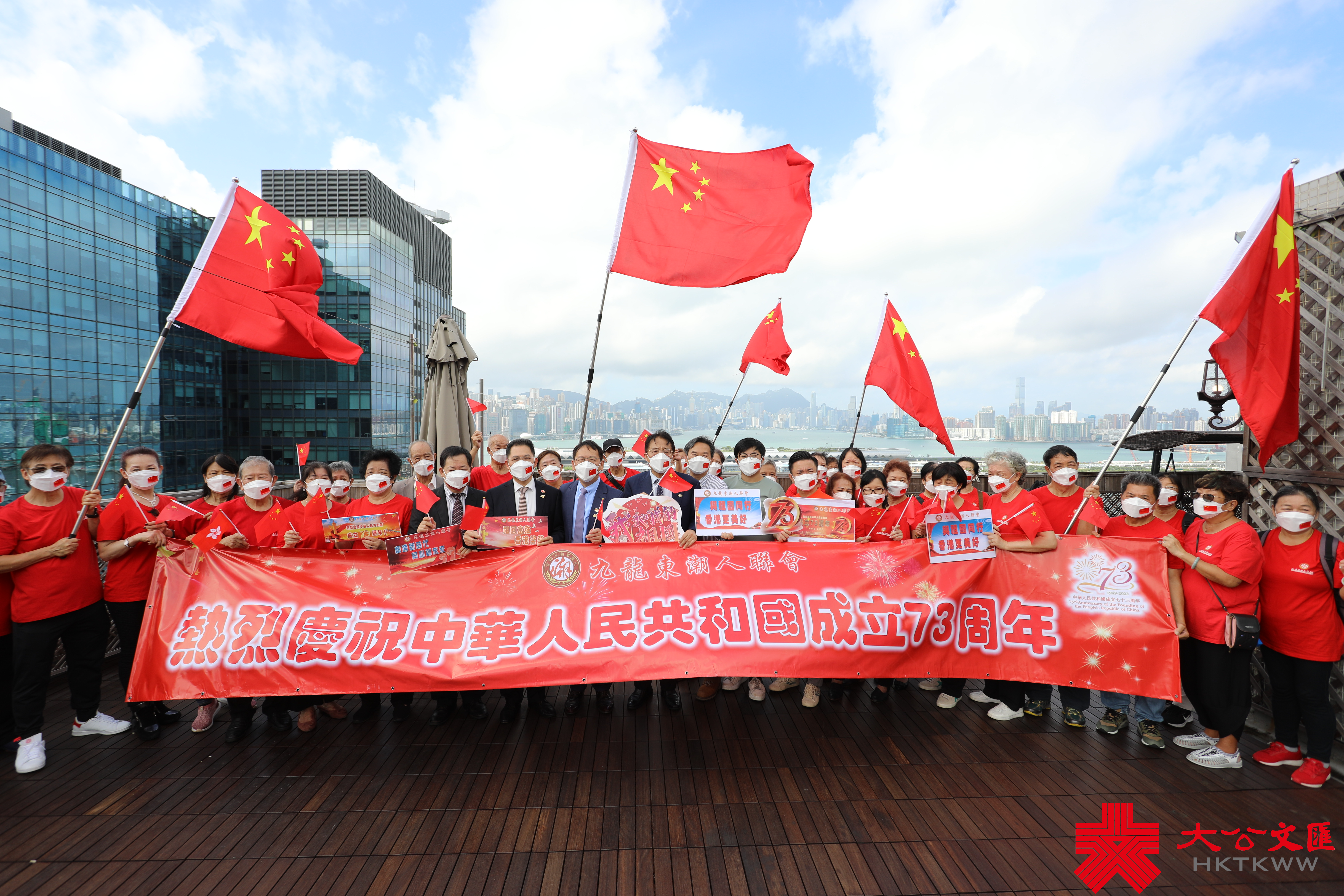九龍東潮人聯會會長楊育城表示,今天是新中國73周年華誕,聯會一直秉持愛國愛港的傳統,從2019年開始,組織會員揮舞國旗和演唱愛國歌曲慶祝國慶,抒發愛國之情,祝福祖國繁榮昌盛。