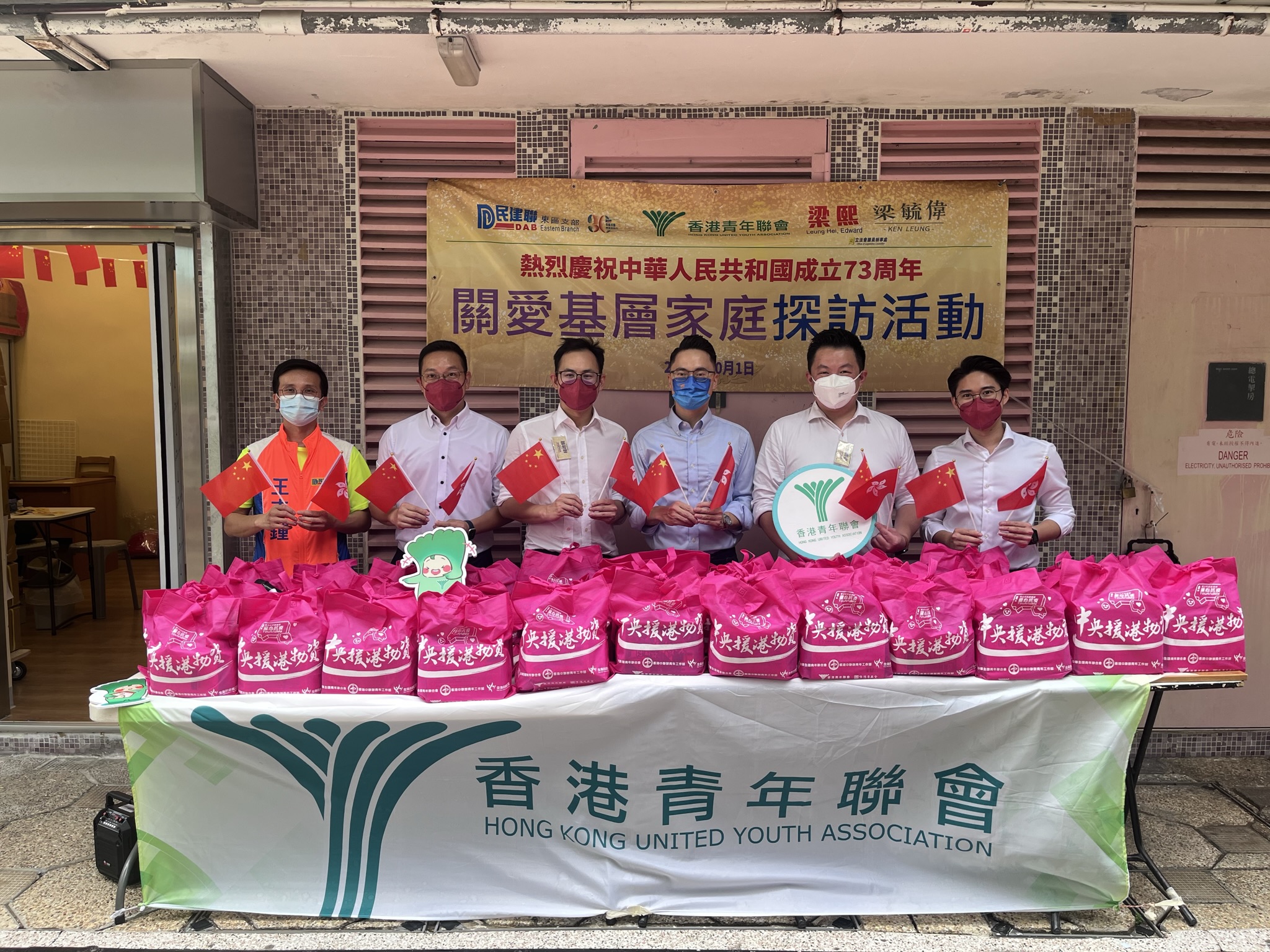 大公文匯全媒體報道,今天(10月1日)是國慶日,香港青年聯會(青聯)與民建聯東區支部預備1000份愛心禮包,為筲箕灣耀東邨已登記的兒童及青少年家庭送上節日祝福,讓他們感受到社會各界的關懷。
