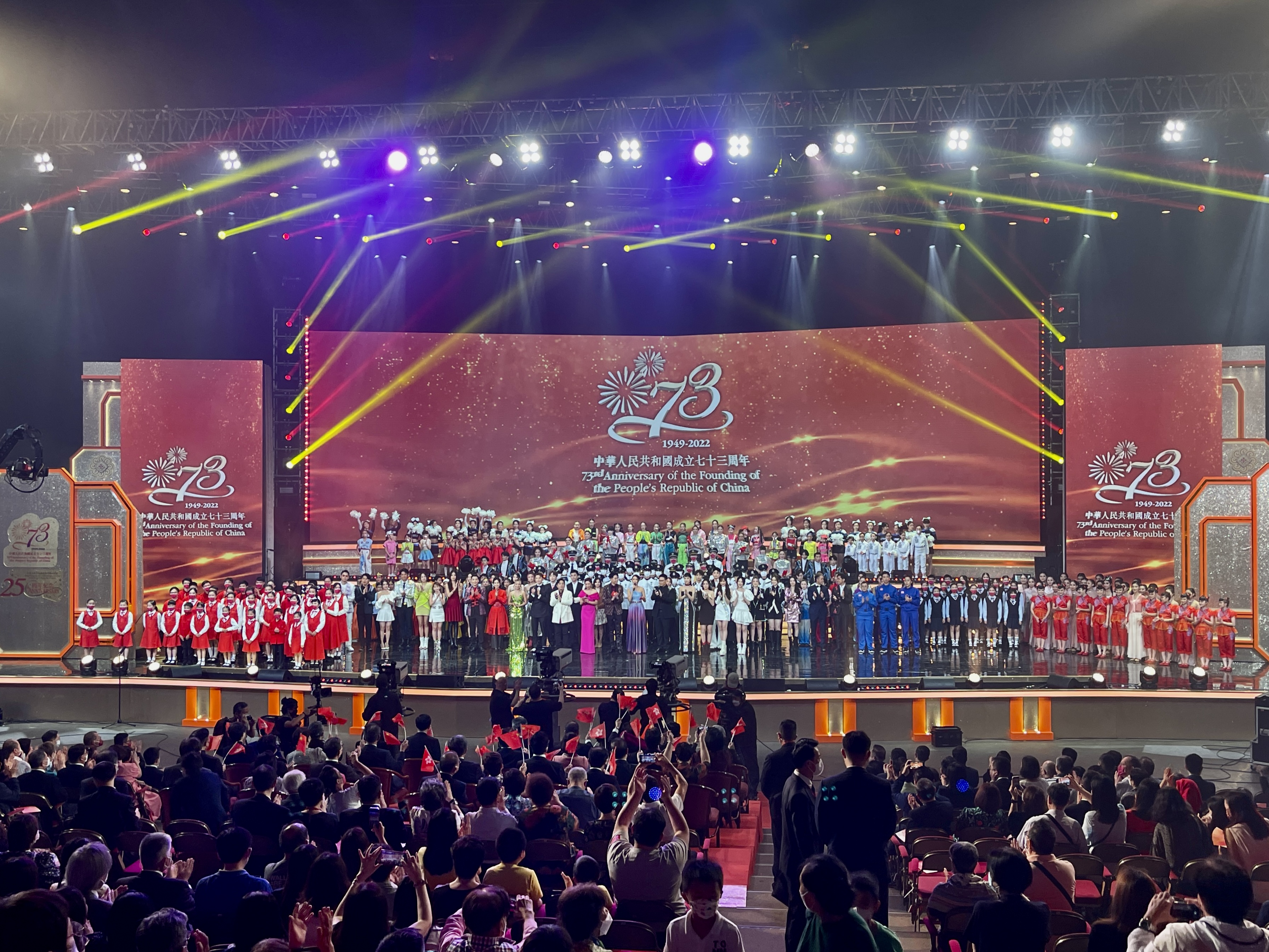 (大公文匯全媒體記者 徐小惠、顔琨)為祝賀國慶73周年及香港回歸祖國25周年,以「盛世騰飛 璀璨未來」為主題的「國慶文藝晚會」今晚(10月1日)假紅磡香港體育館舉行。演出由香港同胞慶祝中華人民共和國成立73周年籌備委員會舉辦,匯聚音樂劇、舞蹈、武術、歌唱、粵劇、音樂演奏等一系列精彩及多元化的表演節目,與市民共賀國慶。