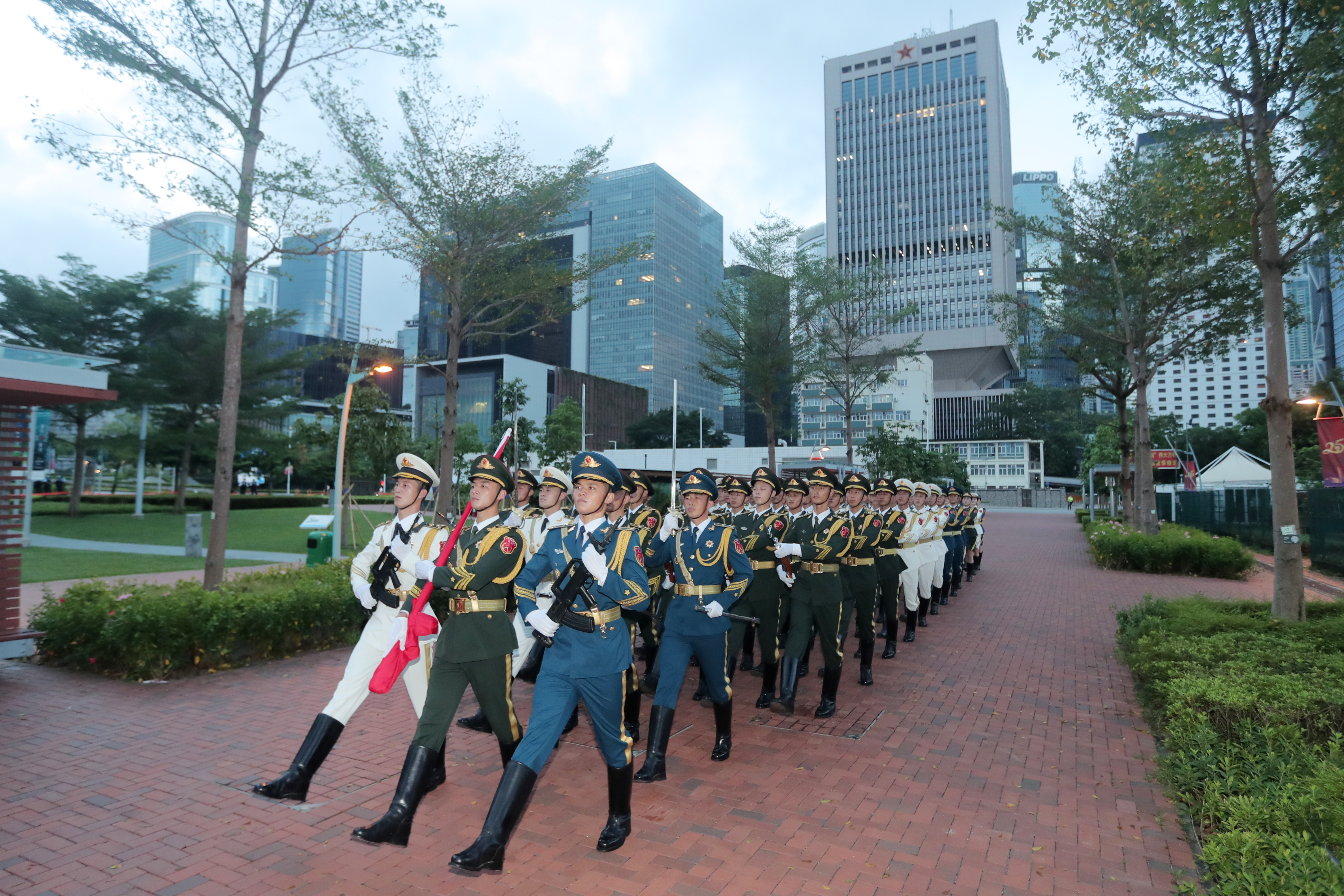 在赤柱、昂船洲、石崗、槍會山等駐香港部隊軍營,昨日都舉行了升國旗儀式。