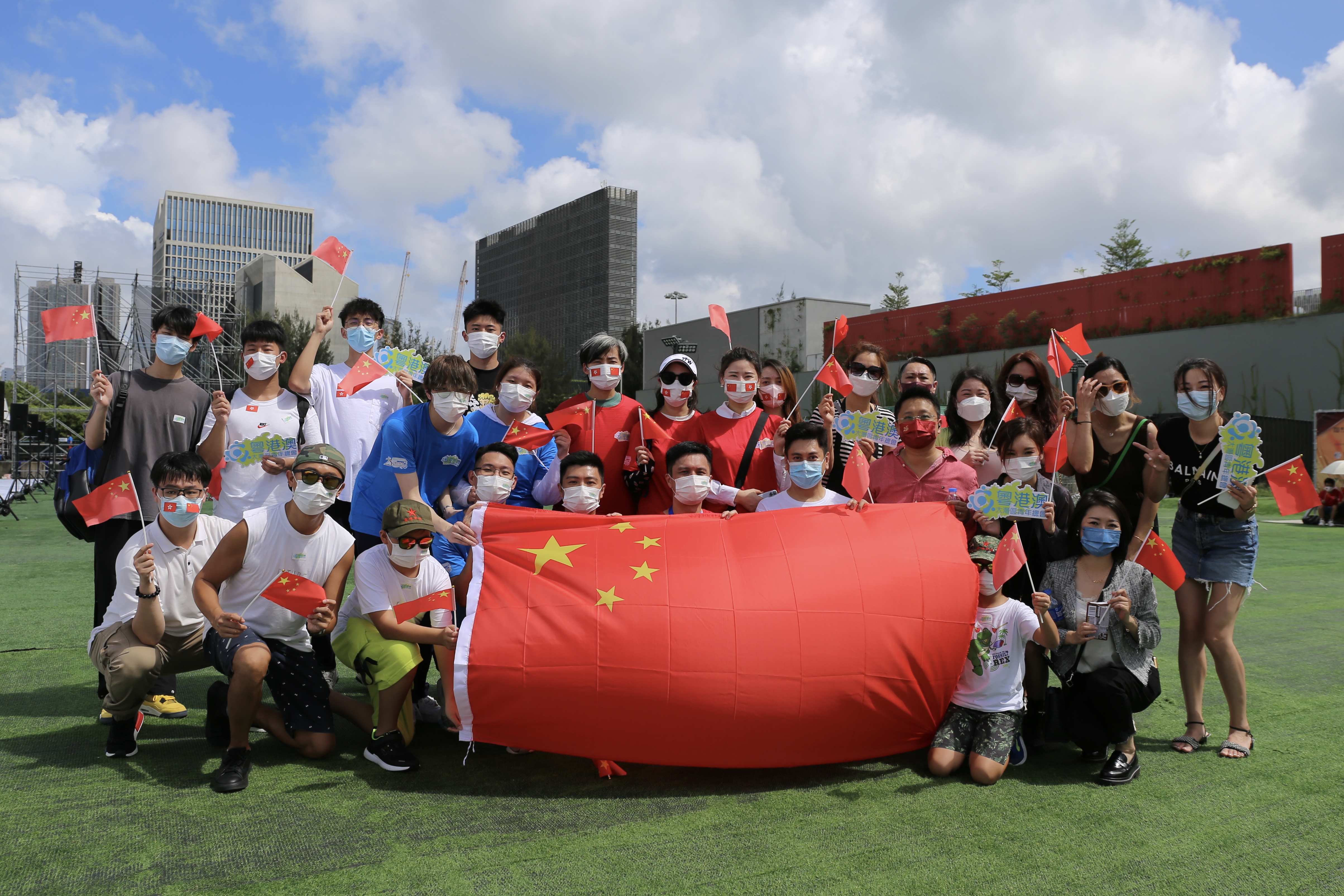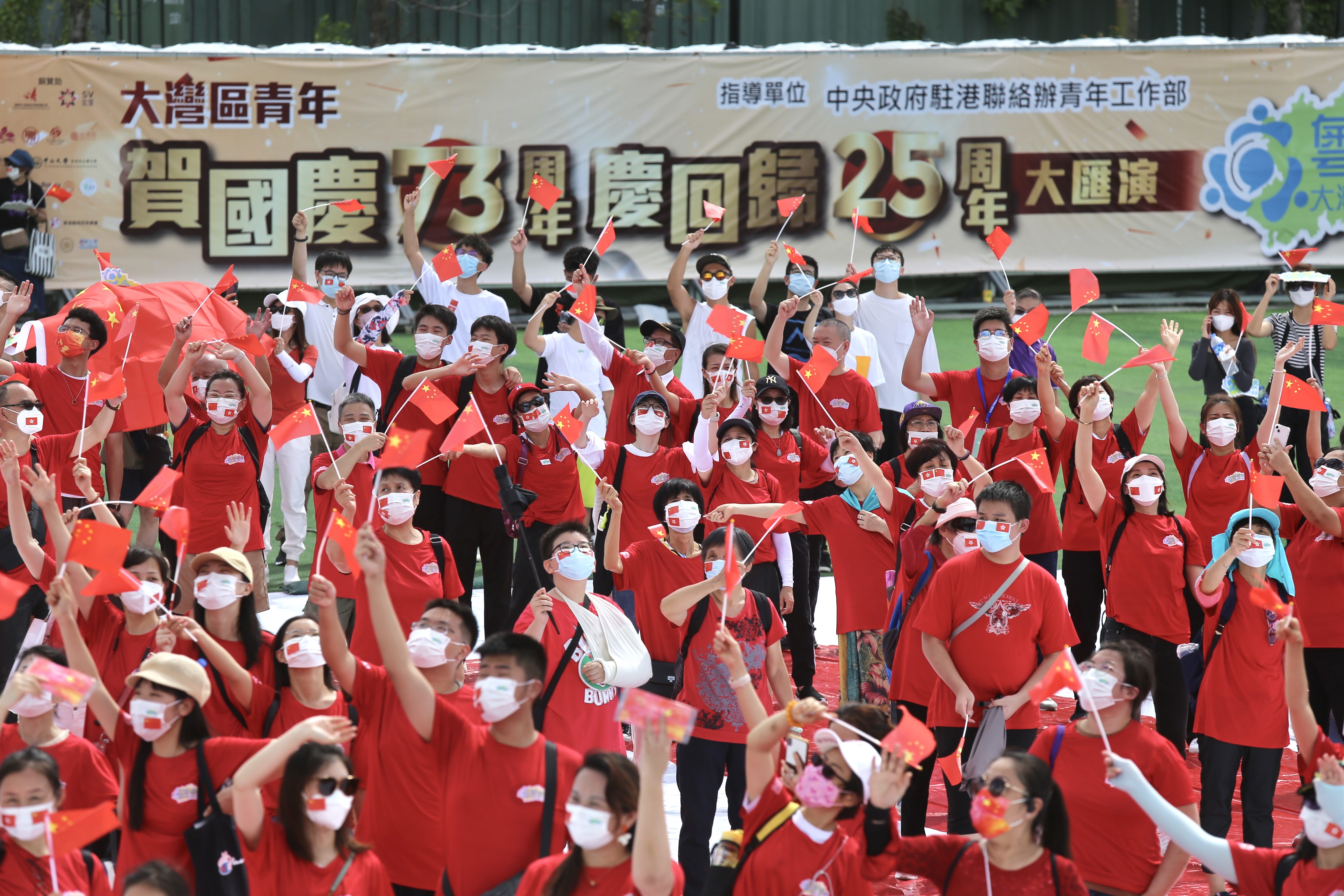 (大公文匯全媒體 記者 黃釔淼)粵港澳大灣區青年總會今日(2日)下午在西九龍文化區竹翠公園主辦「大灣區青年賀國慶73周年、慶回歸25周年大匯演」,超過1,200名青年參加活動。現場青年朋友對大公文匯全媒體記者表示,在香港也感受到國慶的節日氣氛,非常高興。有來自内地的同學表示,國安法讓他們能安心到港求學,大灣區發展提供了很多機會,畢業後會考慮留港發展。