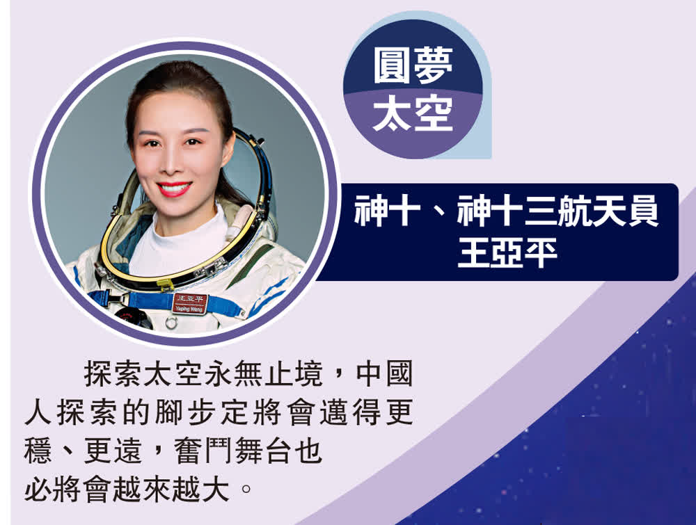 王亞平是中國首位「太空教師」,她曾執行神舟十號和神舟十三號任務。回憶起航天員訓練的日子,王亞平說,成為航天員之後,要學習30多門課程,包括高等數學、空氣動力學、天文學、解剖學、機械製圖等。在那段時間,她幾乎沒有邁出北京航天城的大門,三年沒有逛過街。