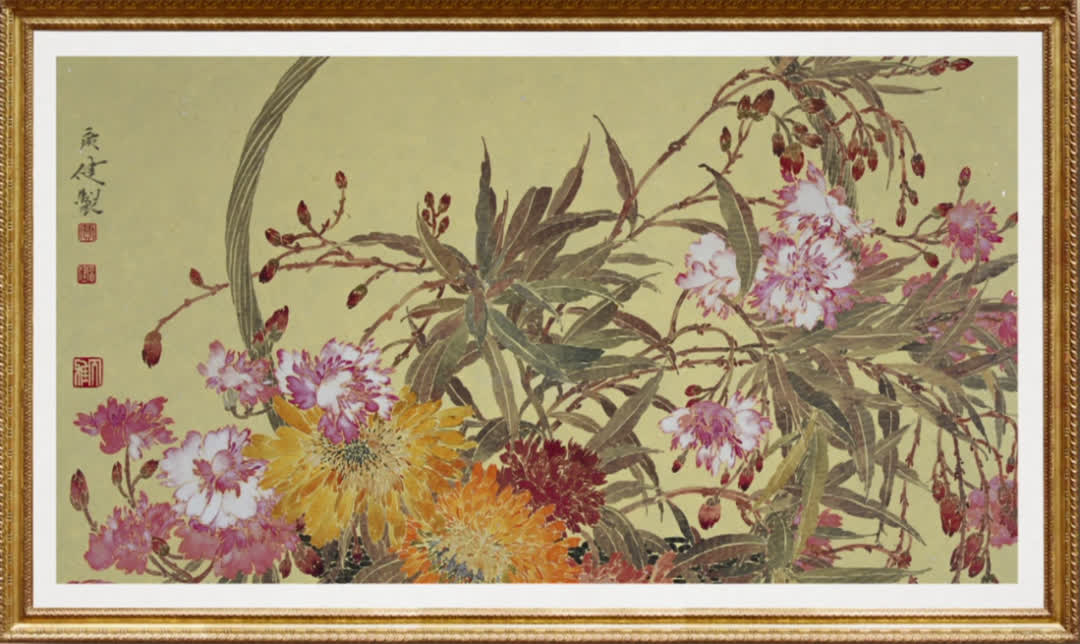 於是,他認真研習清代畫家惲壽平的沒骨畫法之精髓。經過多年鑽研,他先後創造出沒骨畫《粉淡香輕》《鳴秋》《盛世繁華》等作品,這些沒骨畫作品,開創了骨秀內含、雅靜舒逸的時代新風。