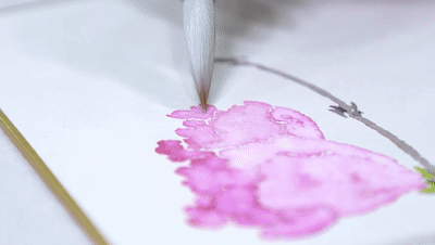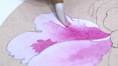 「沒骨畫最重要的是它用沒骨點染,一次成形。調色是非常重要的,我畫的這一個花瓣,需要它更鮮亮一些,我就少加粉。」