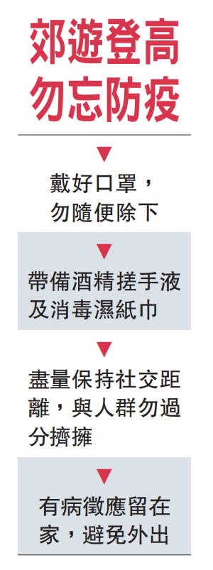 重陽節另一習俗是登高,昨日山頂人頭湧湧,多個熱門行山徑也出現人潮。在網上發起「上山下海執垃圾」、呼籲市民愛護環境,不要亂拋垃圾的義工冼力求(別名「貓哥」),和一批義工也經常在周末和假日,登山涉水協助清潔。