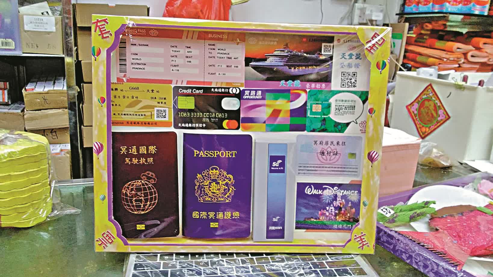 祭品款式方面,傳統上仍然以金銀衣紙和衣服較受歡迎,本港放寬「0+3」防疫措施,祭品也搞搞新意思,推出「國際冥通護照」和「冥通國際駕駛執照」,吸引孝子賢孫選購,反應不俗。