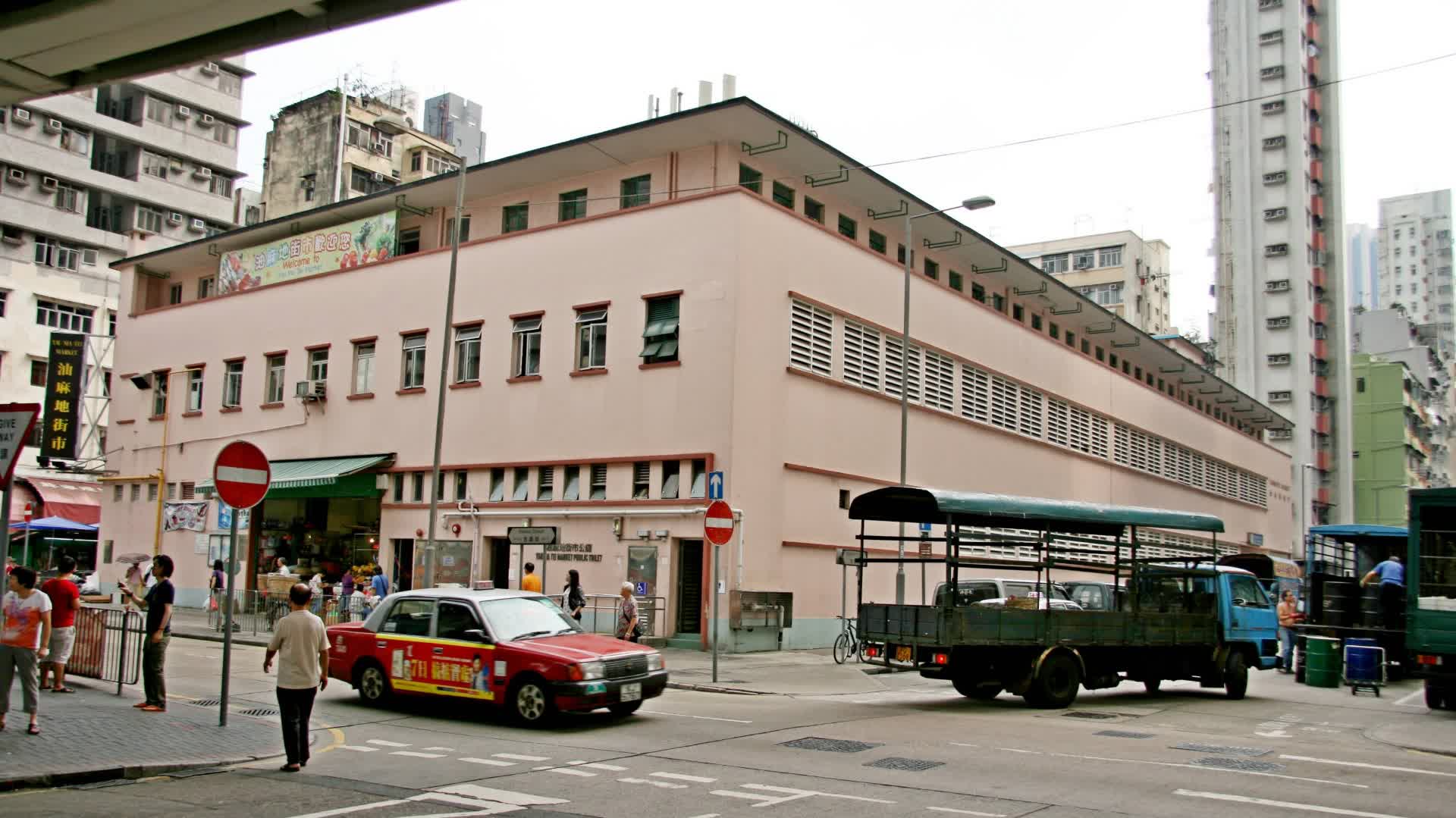 外牆髹上粉紅色的油麻地街市,曾是二戰後興建的街市項目中最大的單幢式街市,亦曾是九龍最大的街市,與港島最大的中環街市齊名。