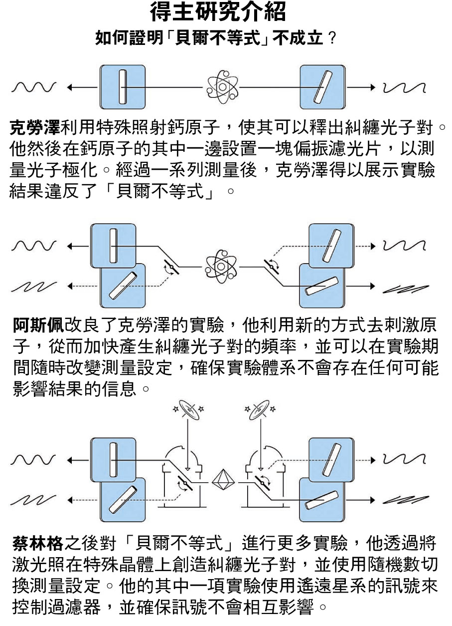 本屆物理諾獎得主阿斯佩、克勞澤和蔡林格3人,正是憑着對「貝爾不等式」的實驗,證明愛因斯坦是錯的。