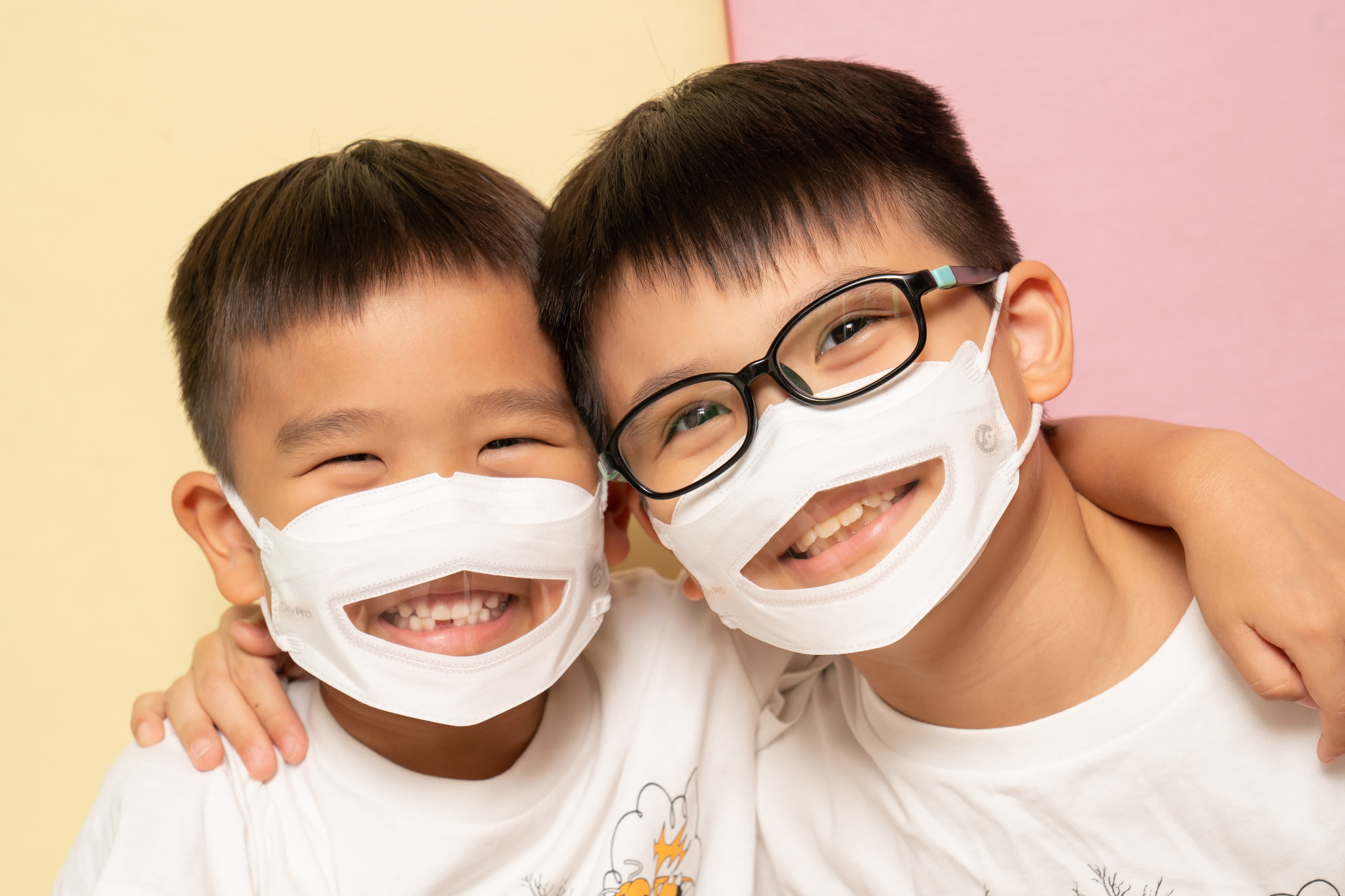 兒童「讀唇友善」口罩設計以「防霧透明窗」為基礎,並採用立體剪裁,讓口罩內部有更大空間,不單透氣舒適,更避免透明膠片與嘴唇接觸,加上貼面的設計,提高防護能力之餘,更使透明膠片不易變形和移位。在物料選用上,口罩採用防霧塗層膠片,更選用高質紡粘和熔噴無紡布,達到醫護級安全過濾效能,保護孩子同時也可以透過透明膠片清晰地看見學童的唇部動作、面部表情及笑容。