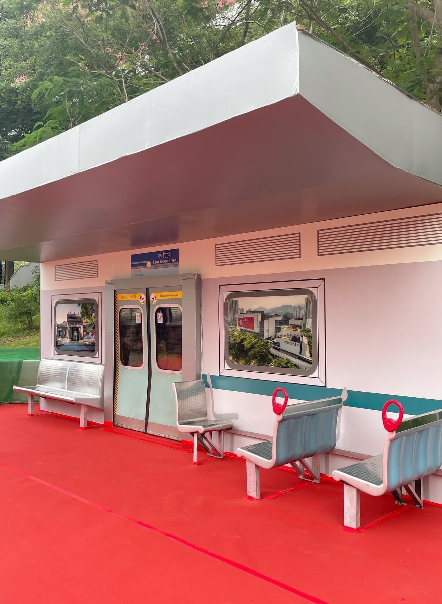 大公文匯全媒體報道,近日,大埔林村河邊多了一個模擬車卡模樣的避雨亭,已退役的東鐵綫「烏蠅頭」列車座椅及車門,都在河邊出現,成為鐵路迷打卡熱點。民建聯立法會議員陳克勤昨日(6日)亦有前往打卡,直言希望這種環保重用的概念,能夠推展到各區。