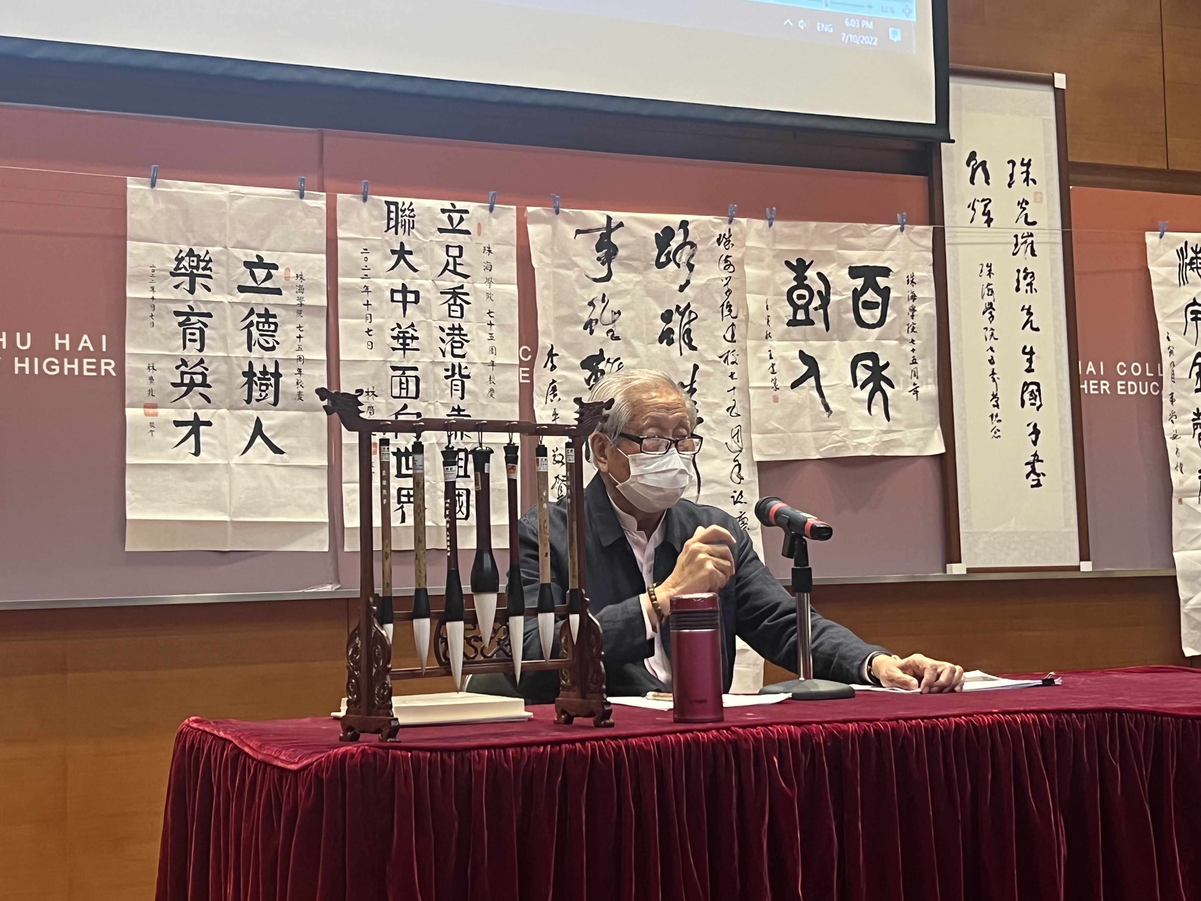 (大公文匯全媒體 記者 周琳琳)珠海學院今日(7日)下午舉辦慶祝香港特別行政區成立25周年暨建校75周年之中國傳統文化系列活動之「書法歷史與文化」講座,由恒通資源集團有限公司董事局主席、第八屆至十一屆全國政協委員、中國書法家協會顧問兼香港分會主席、2016年銀紫荊星章獲得者施子清先生主講。出席活動現場的嘉賓還有珠海校董會主席林廣兆、校董陳良勇,候任校長陳致,立法會議員梁美芬等。