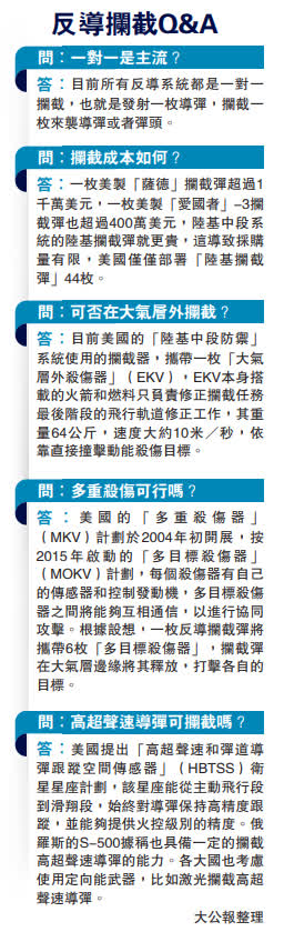 宋忠平還指,中段反導攔截,不僅可以攔截中程彈道導彈,更可以有助於攔截遠程和洲際彈道導彈。「現在面臨周邊更多彈道導彈的部署,我們需要強化攔截體系,無論是中段反導攔截,還是末段高空、末段低空,我們都需要建立完整的反導體系。」