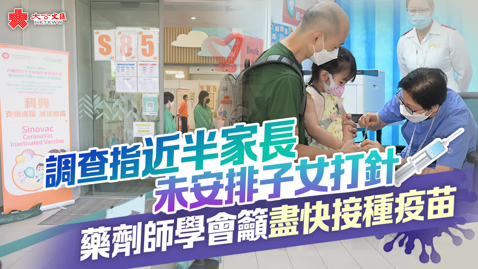 大公文匯全媒體報道,本港第五波疫情持續,特區政府鼓勵父母帶同子女接種新冠疫苗。惟醫院藥劑師學會今日(9日)公布一項調查指,近半受訪家長表示沒有或不會讓子女接種新冠疫苗。醫院藥劑師學會訪問147名家長,當中有47%受訪者拒絕讓子女打針。學會指,兒童及青少年染疫後症狀平均持續8.2個月,呼籲家長應盡快安排子女打針。