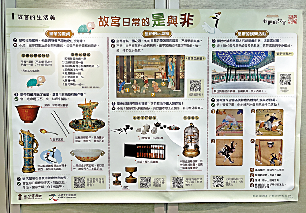 陳愛娟說,展板內亦設有二維碼,學生可以自行掃碼觀看教學片段,例如介紹故宮「火地取暖」的動畫;教材中亦配有故宮四季大掛圖、影片、學習小冊子等作為輔助,方便學生延伸學習。「學校可以在校內主題活動中運用這些資源,而我們亦期待下個學年有機會推出新的主題展板,擴寬學生的知識面。」