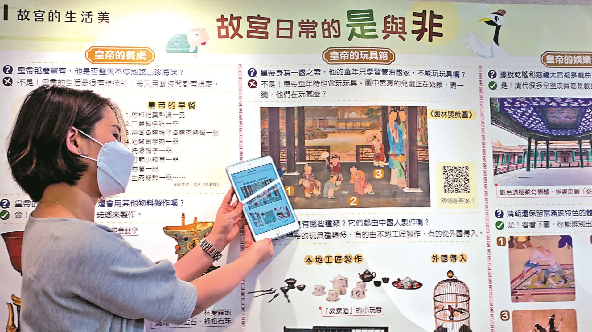 在老師教學方面,「我們的故宮」還提供了學科工作紙,讓學生透過故宮文化學習各科知識,例如從紫禁城的照明工具中學習科學。陳愛娟表示,目前第一批教材已於9月30日推出,包括大掛圖、展板等,學科工作紙將於10月底陸續上載。