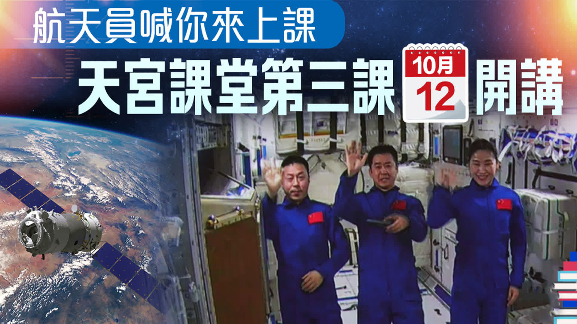 據中國載人航天工程辦公室消息,「天宮課堂」第三課定於今日(12日)下午3時45分開始,神舟十四號飛行乘組航天員陳冬、劉洋、蔡旭哲將面向廣大青少年進行太空授課。