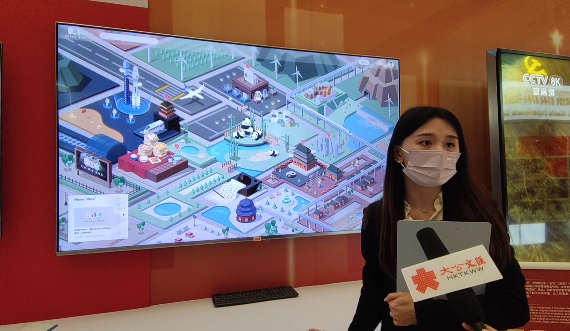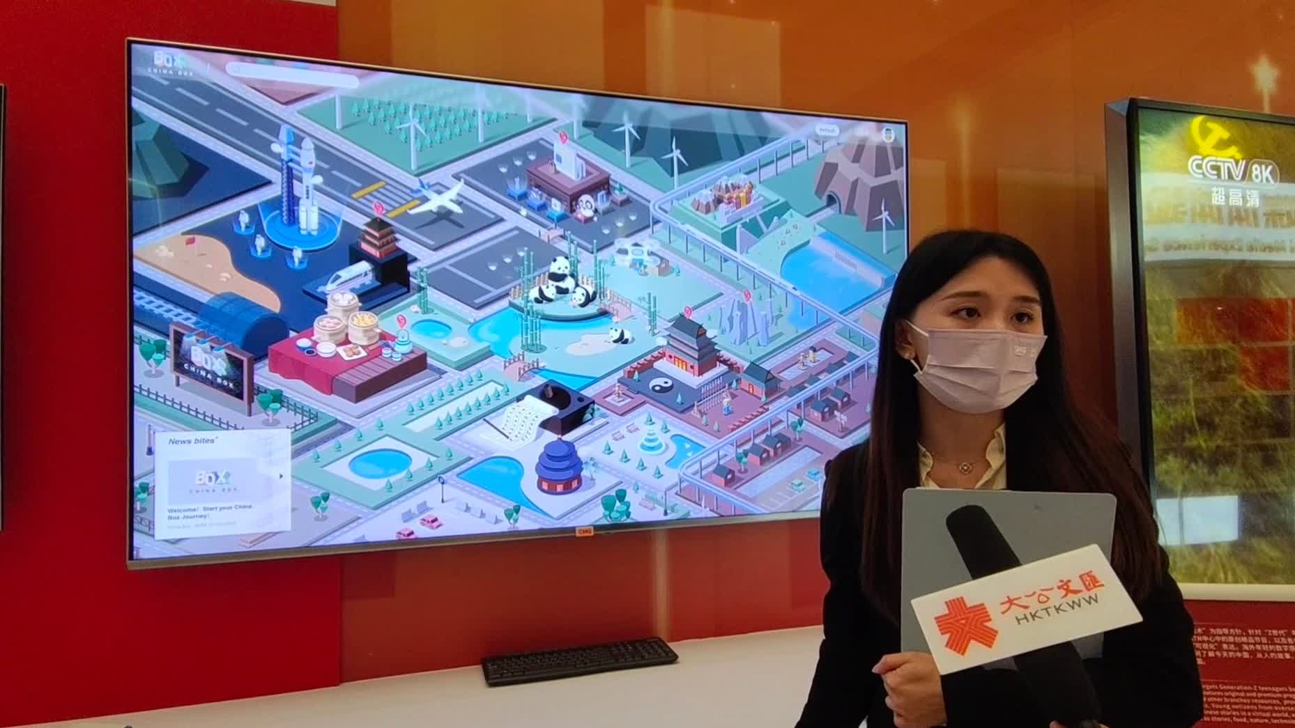 在中國故事盒子(China Box)展區,工作人員向大文記者介紹,這款交互產品針對海外「Z世代」年輕人推出,通過中英雙語向海外介紹中國,觀眾掃描二維碼就可化身虛擬形象,探索盒子裏的故事,從人的故事、美食、自然、科技、功夫等不同品類近距離感知中國。