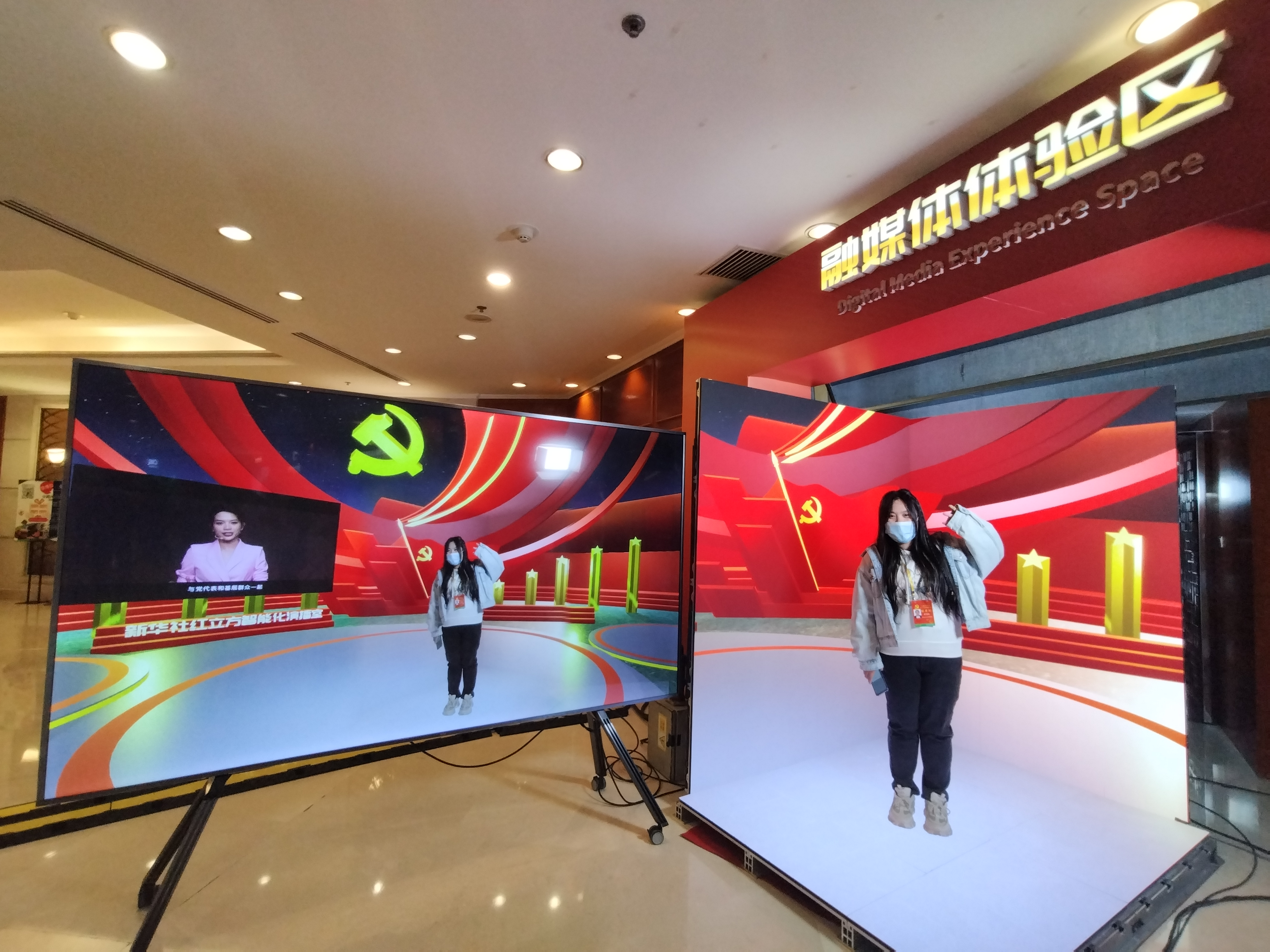融媒體驗區科技感十足,現場設置的照片牆吸引不少中外記者拍攝。照片牆多角度展示了中國近年來的發展,冬奧運動員、天宮宇航員、普通農民、山區兒童等不同人群都出現在照片牆上。翻轉照片就可看到照片的故事,右下角還附有二維碼,觀眾手機掃碼就可觀看整個影像裏的新時代圖片展。