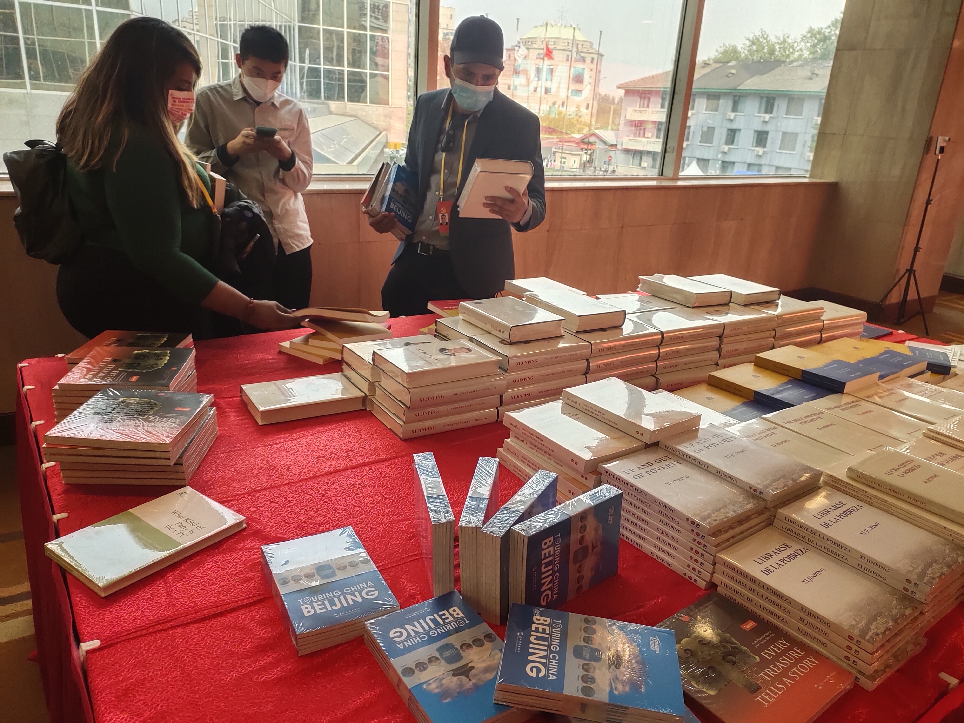 一名來自非洲喀麥隆的記者CHEMETE PIERRE向大公文匯表示,這是他第一次來中國,能夠參加這次盛會感到非常榮幸,「在中國的這段時間裏,我深切感受到中國的繁榮富強」。他說過去十年中國發展迅速,「中國的成就、經驗與我們非洲的發展息息相關。」CHEMETE PIERRE表示,自己對中醫很感興趣,前幾天剛去貼了耳穴,期待接下來在中國期間有更多新發現,「我剛剛從取閱圖書的地方選了好幾本書,其中最感興趣的就是英文版的《習近平談治國理政》,我會認真閱讀這本書,希望從中了解更多中國成功的經驗。」