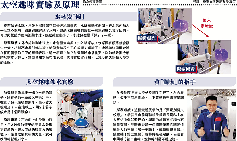 「當真讓我獲益良多!」中三學生陳映霖告訴香港文匯報記者,在這次「天宮課堂」中,航天員們的有趣講解啟發了她對航天科學研究的興趣,航天員們同時也用了精彩的實驗,去解釋很多平時大家較少機會接觸的科學知識,她很想有機會問問航天員們:「是什麼鼓勵着你們在遙遠的太空中進行科研工作?」而對於國家開始在港澳地區選拔載荷專家,她認為這無疑在未來給香港學生提供了更多的機會參與國家航太科技發展。熱愛物理科的她透露,未來希望能成為一名老師,將知識傳遞給一代又一代的學生,為國家培養潛在的航天員和載荷專家。