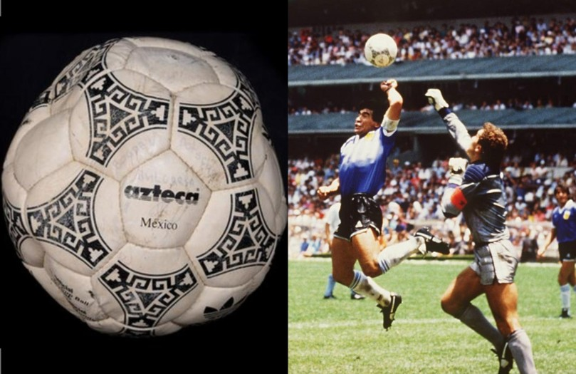 1986年6月22日,墨西哥世界盃四分之一決賽,阿根廷對陣英格蘭,馬勒當拿在下半時用一個隱蔽的抬手動作把球拍入英格蘭隊球門,主裁判視線不佳,判定進球有效。馬勒當拿賽後開玩笑說,那個球是在「一點馬勒當拿的頭和一點上帝的手」幫助下進門的。「上帝之手」由此得名。進球4分鐘後,馬勒當拿狂奔68米,連過5人,再次進球,最終幫助阿根廷2:1淘汰英格蘭。這第二個進球被國際足球聯合會2002年評為「世紀最佳進球」。